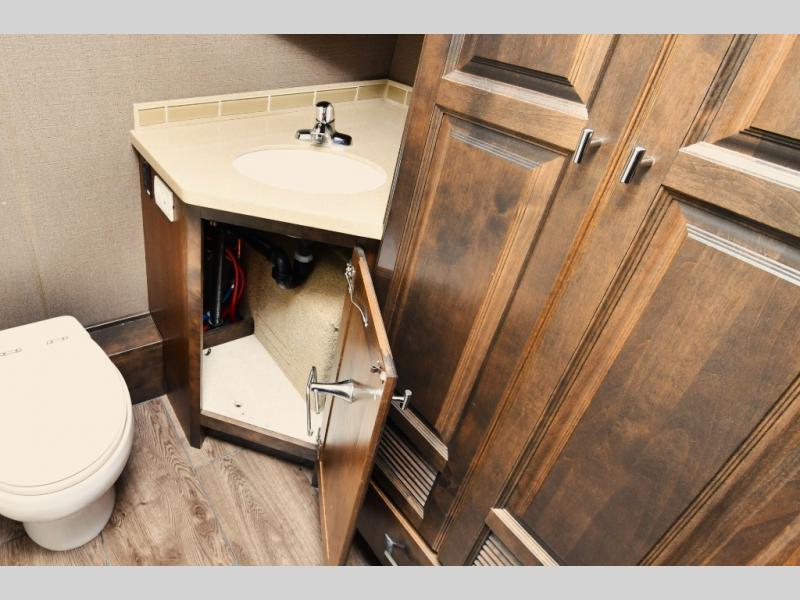 Residential touches including hardwood cabinetry, solid construction, and premium finishes