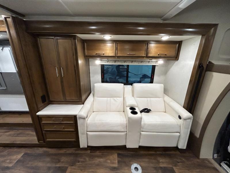 Just imagine you and your favorite person riding down the road to find adventure or your kid's tournament. This Wayfarer 24 FW class C diesel motorhome offers four seatbelts, a full wall slide out providing more interior floor space to move from one end to the other, and sleeping space for six. You can retire to the queen Murphy bed while the kids choose to sleep on the sofa bed or on the loft bed over the cab. The rear full bath provides all you will need to stay clean and ready to go. There is wardrobe storage, pantry space, and much more. Check this model out today!