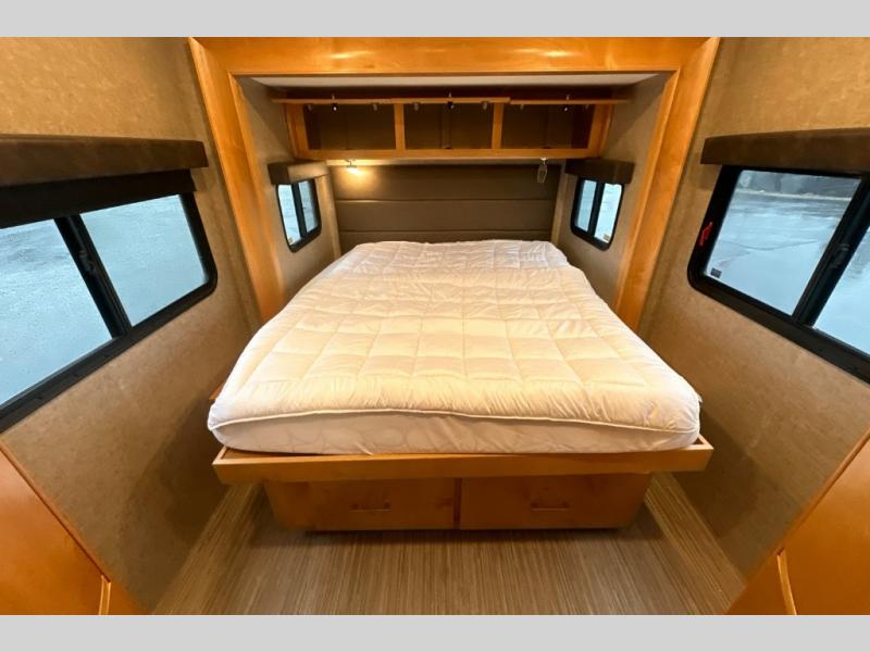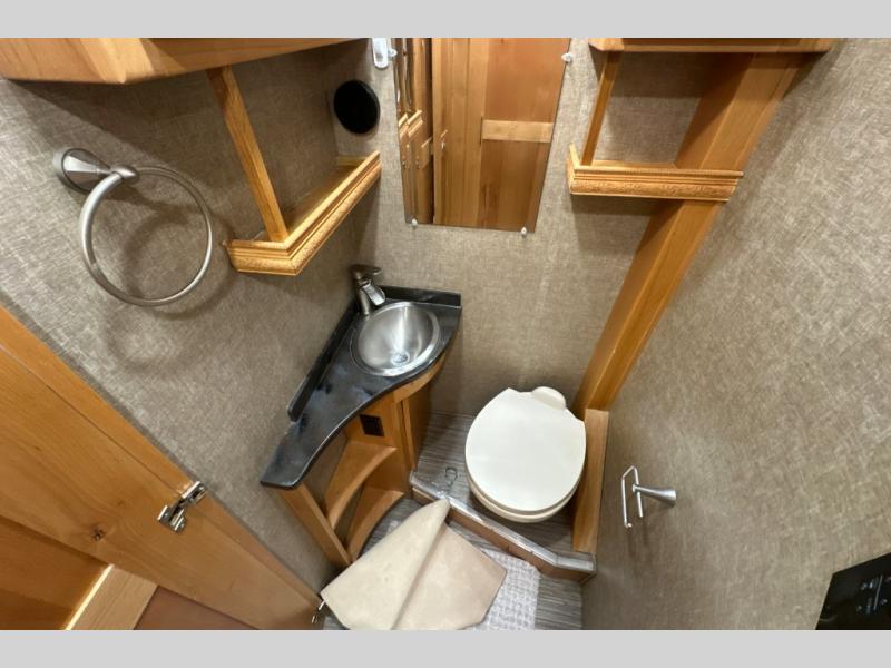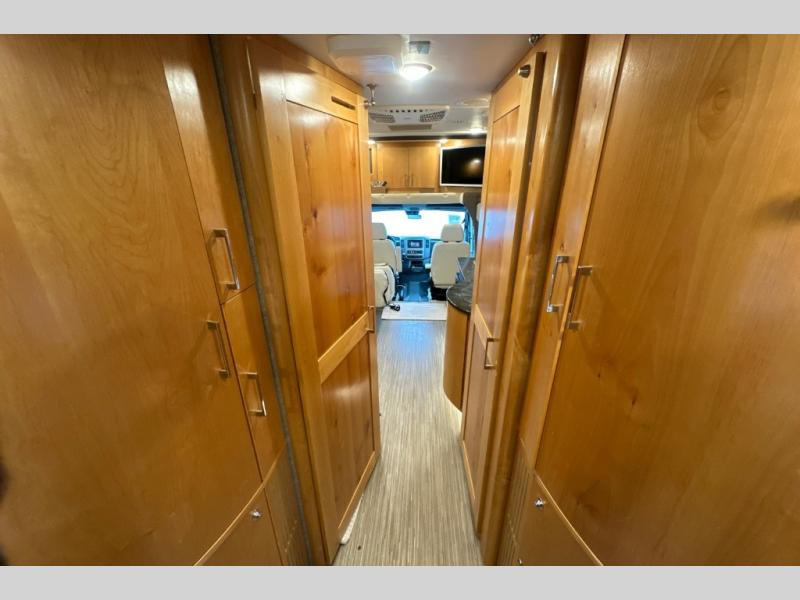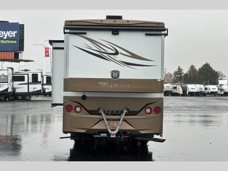You don't have to wait very long to clean up when there is a split bathroom. This Wayfarer 24 BW class C diesel motorhome provides access to the shower separately from the private toilet and vanity with sink. And if you prefer your own wardrobe, this unit allows for his and hers clothing along separate sides of the coach. The two slide outs allow more interior floor space within the living room and the rear bedroom. And the loft bed over the cab provides additional sleeping space for your kids or overnight guests. There are several more features to see, and options to choose from.