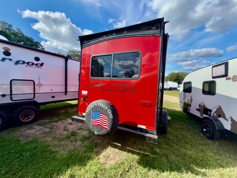 Enjoy each camping trip you take with this lightweight Falcon F-20 trailing smoothly behind you. This travel trailer features everything you might need to enjoy spending time away from home. Along the rear there is a dinette where you can enjoy your meals and at night easily convert the dinette into additional sleeping space. Before you head out for your camping trip you can stock your 5 cu. ft. refrigerator with all of the essential food needed for your family. Along the front you will find a queen bed with storage underneath. This model also features a wet bath so now you won't have to use the campground facilities. Along with all of the standard features you can also choose the Eclipse Package, Fire Package, or the GT Package!