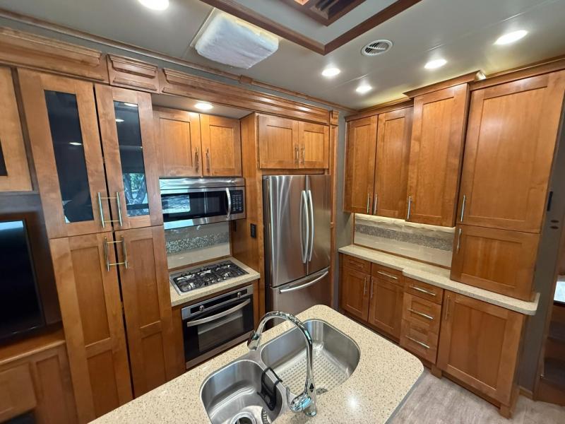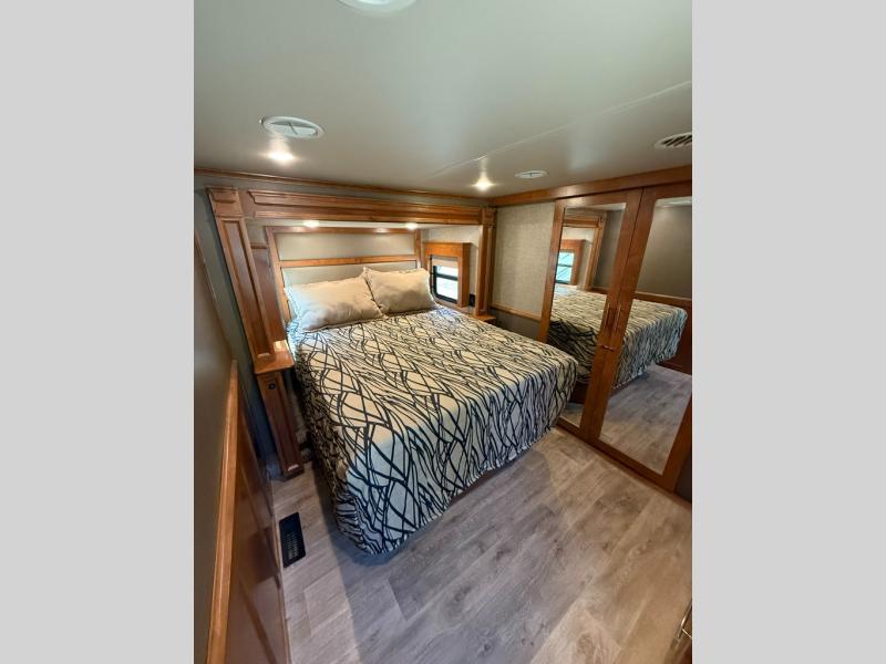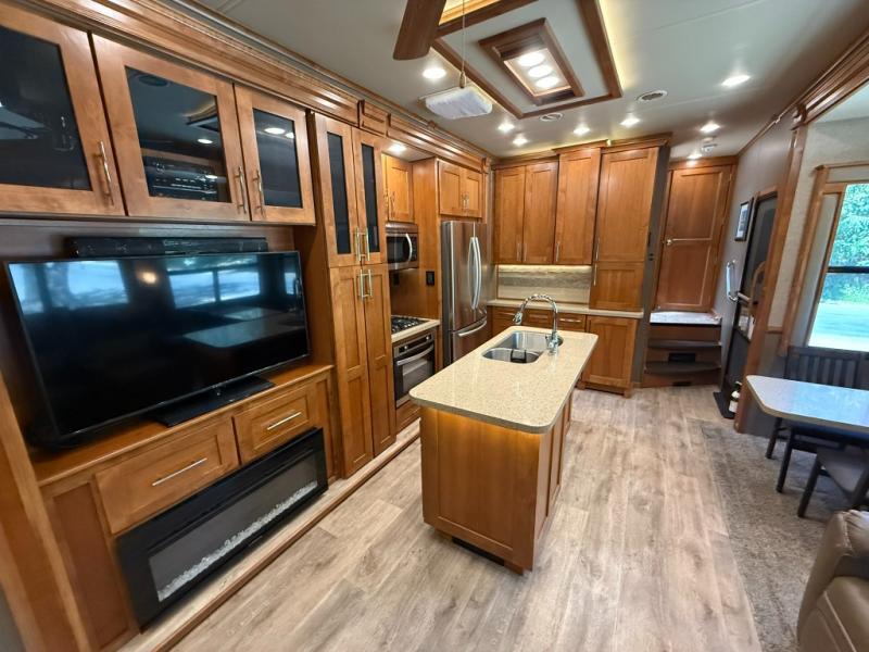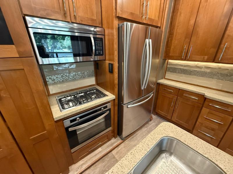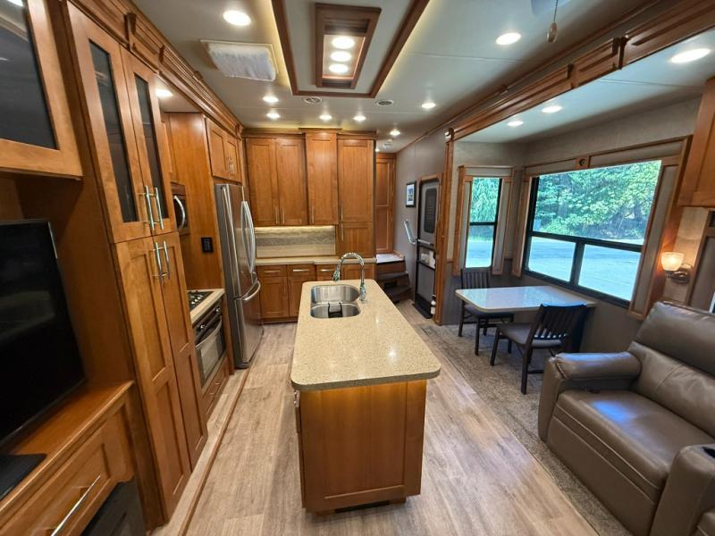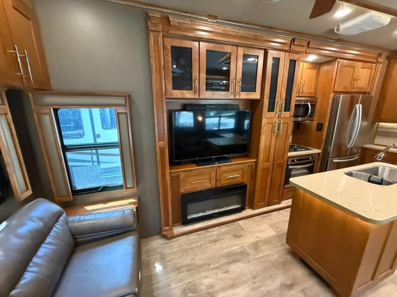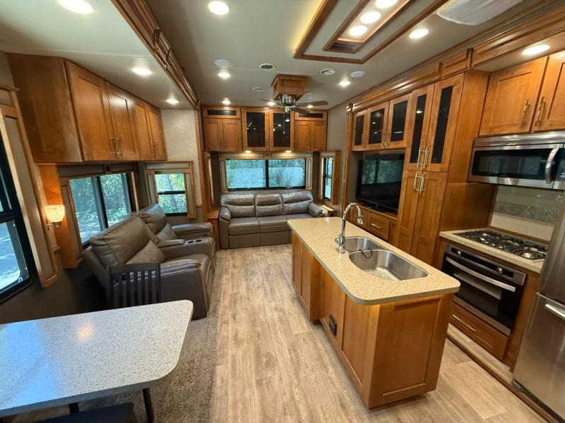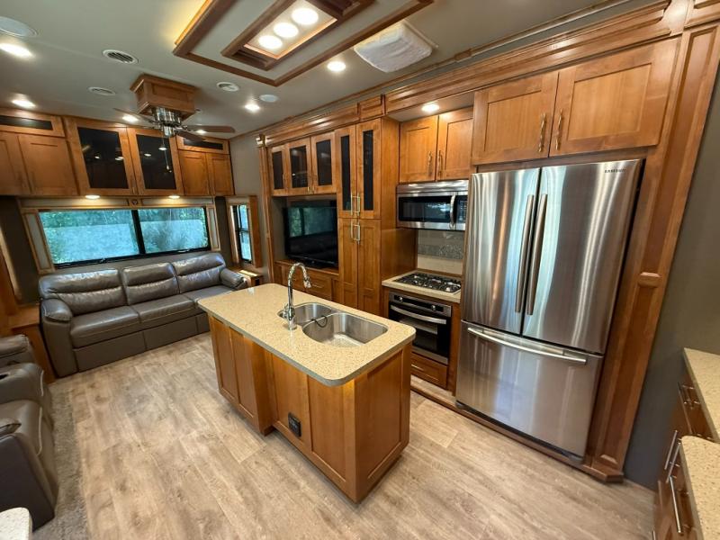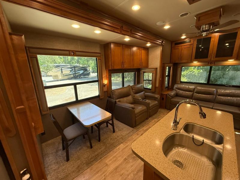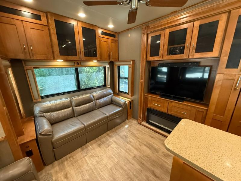 When you choose a Vilano fifth wheel you are getting a luxury fifth wheel without the high end price tag. Outside you will find a fully enclosed and heated underbelly with heat return and a Noble T60 high gloss fiberglass exterior. Inside enjoy solid surface kitchen countertops, a few residential features such as a kitchen faucet with pull-down sprayer, a three burner range, plus an 18 cu. ft. French Door refrigerator. In the living room you can enjoy the 50" LED TV, a residential fireplace, plus a sound bar with surround sound. The bedroom features dual USB ports in the nightstands, plus a hardwood six-drawer dresser and so much more! Whatever your adventure holds there is a fifth wheel model for you!