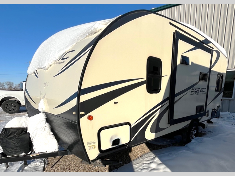 Looking for a cozy travel trailer to easily store at home, and take with you on your hunting trips, vacations, or weekend get-a-ways? This Sonic Lite offers full kitchen amenities including a convection microwave, plus a full bathroom. You can eat meals, read a book, and sleep on the dinette once folded down for the evening. You will find storage throughout the interior, and a pass-through compartment on the exterior for those larger items. This model even includes a slide out. Take a look today!