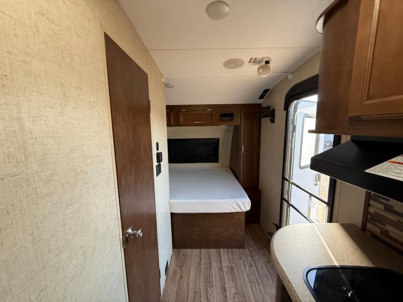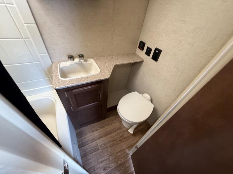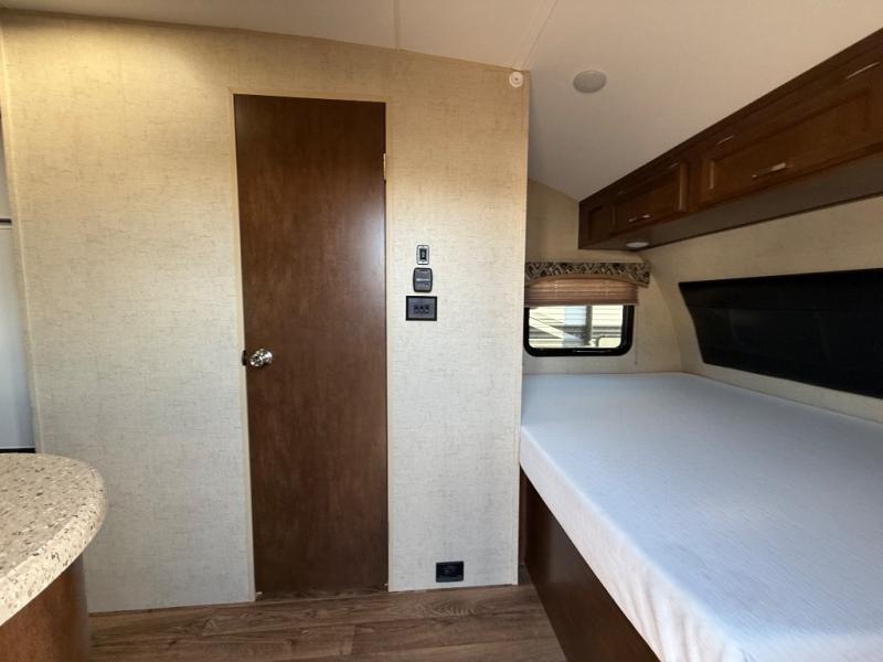 It's time to upgrade your camping situation to this Sonic travel trailer. Just imagine your kids laughing all night long while laying on the dinette and flip-up bunk above. You will be able to get a good night's rest on the queen bed on the opposite side. Everyone can take turns in the full bathroom getting ready before going into town to shop, or hiking around the campgrounds. Once you get back, grab your camp chairs from the pass-through storage and relax under the awning. Take a look today, you will be glad you did!