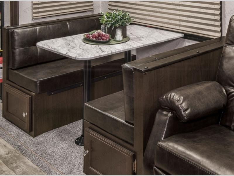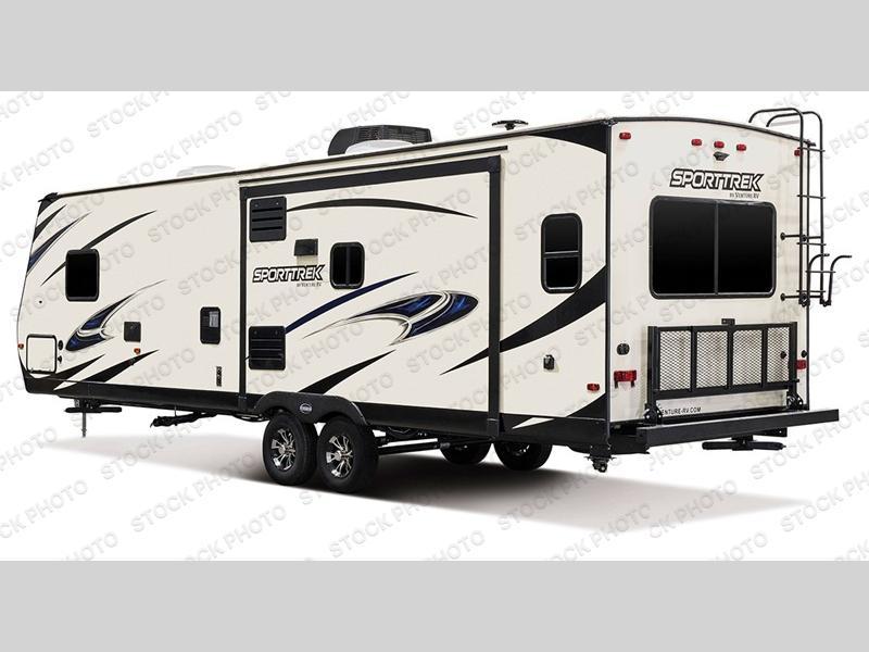 Just imagine relaxing by the lake under one of the two awnings at the perfect campsite in this SportTrek travel trailer. The chef in the family will love the kitchen layout with an island, a hutch, and full amenities to make breakfast, lunch and dinner. When it gets too hot outside you can just see yourself returning to the air conditioned trailer with your choice of the Comfort by Design sofa, theater seats or the dinette. The front bedroom will be your oasis at night which also includes a second entry into the bathroom and plenty of storage for your clothing and such. Come see what else you can't live without when at the lake!