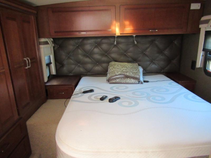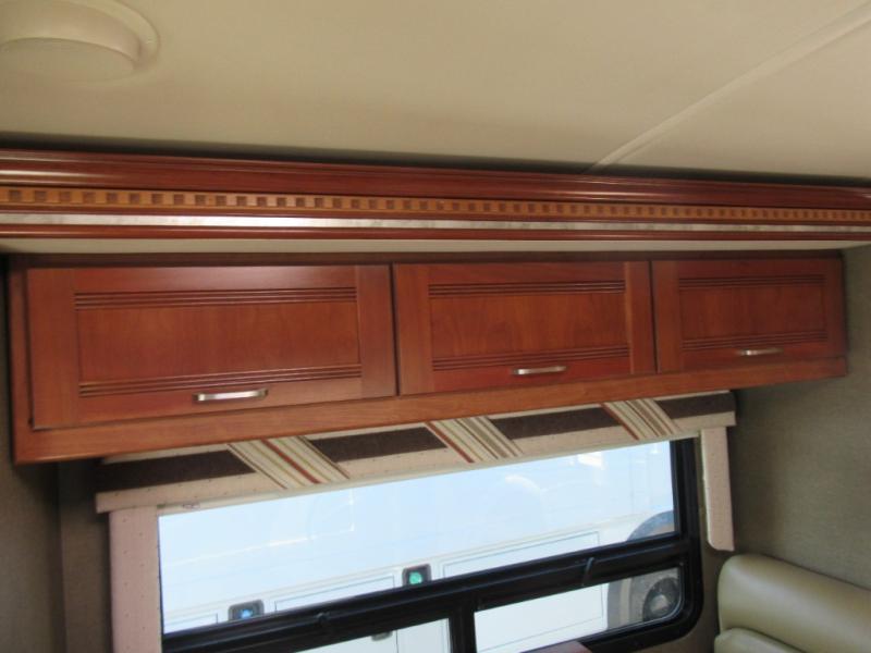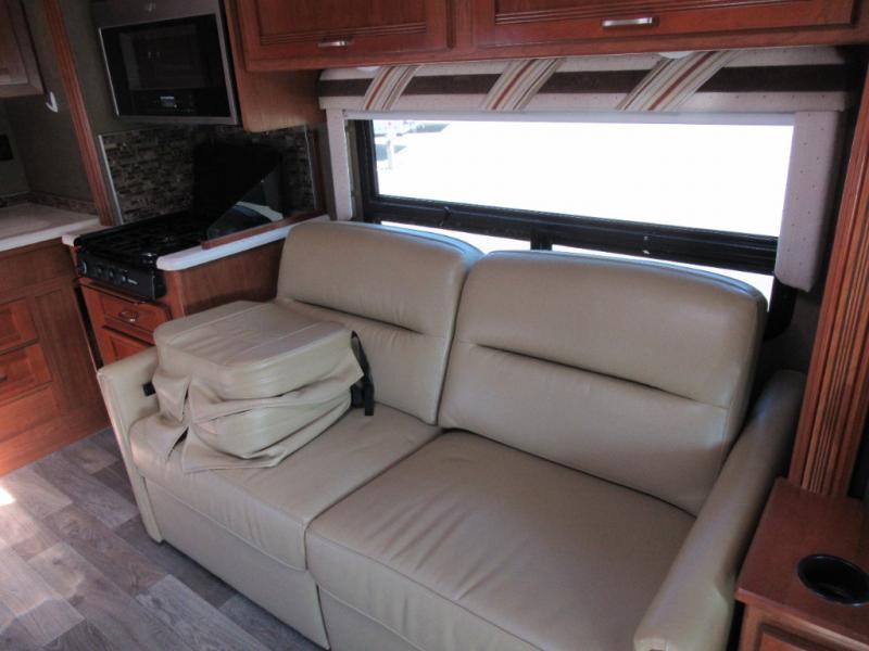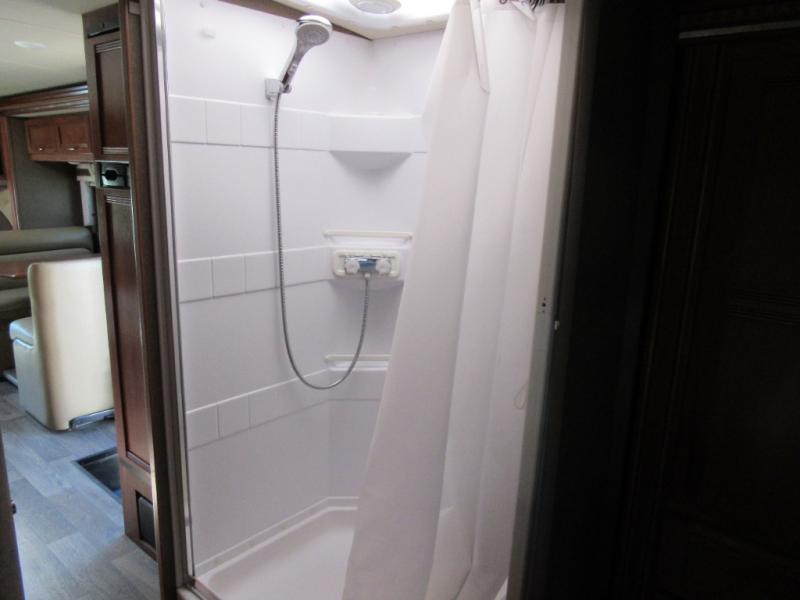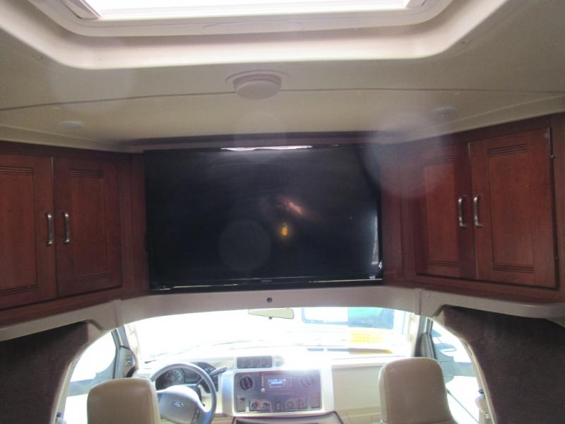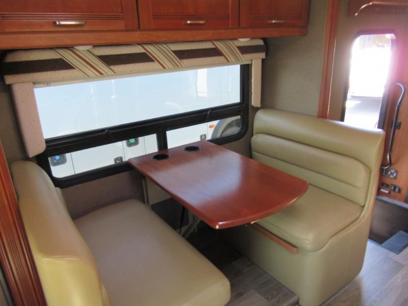 Imagine driving to see extended family in comfortable cab seats with fixed lumbar support while your kids ride on the BenchMark dinette seats that include three seatbelts and the Flexsteel Fold-N-Tumble sofa with two seatbelts. Once you arrive to your destination, everyone can enjoy meals together with seating for eight people. When it's bedtime, just walk towards the rear through a split bathroom to sleep on a queen bed in a semi-private bedroom with a folding door. The furniture provides extra sleeping space as well. You will find storage throughout the inside and exterior as well. Step inside this Cambria class C gas coach today!