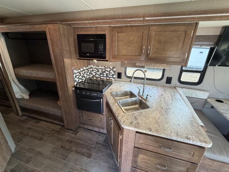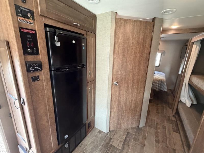 This smartly-styled motorhome from Winnebago offers a fresh and attractive interior with vinyl flooring and LED lighting throughout, as well as tinted windows that will prohibit the sun's rays from damaging the beautiful furnishings. Every inch of this coach has been designed to be superbly functional with amenities like the booth dinette that is able to be used as a dining area, seating area for travel, or sleeping area. Additionally, this coach is supremely affordable, yet it still adheres to the solid foundation standards that you have grown to love from Winnebago.