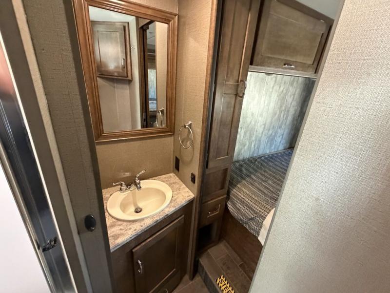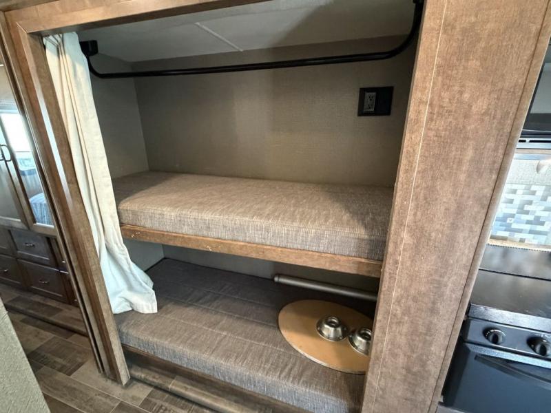 Because this Intent Class A Gas motorhome comes with a queen-size bed in the rear, private bedroom, a set of bunk beds, and a StudioLoft Bed over the cab, it can sleep nine people during any adventure you take, making it a wonderful addition for those with large families, and the full-wall slide gives everyone space to move about freely and enjoy the many indulgent amenities.