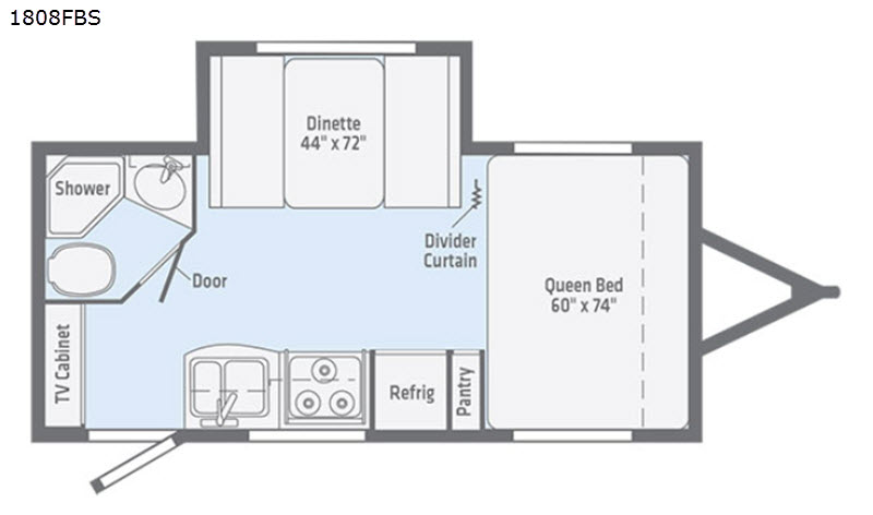 Looking for a compact travel trailer that's easy for you to move around inside? This Micro Minnie 1808FBS offers a single slide out dinette for dining, sleeping, and extra floor space to move from one end to the other. You can sleep on a queen bed with a divider curtain for privacy, and your two young children or your best friend can sleep on the dinette. The full bathroom provides a private space to change clothes and get cleaned up. The cook can use the cooktop or microwave to make meals indoors while you relax in the great outdoors under the awning. Step inside to see what else you will love about this Micro Minnie.