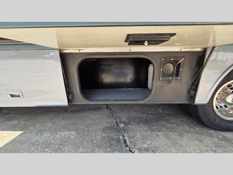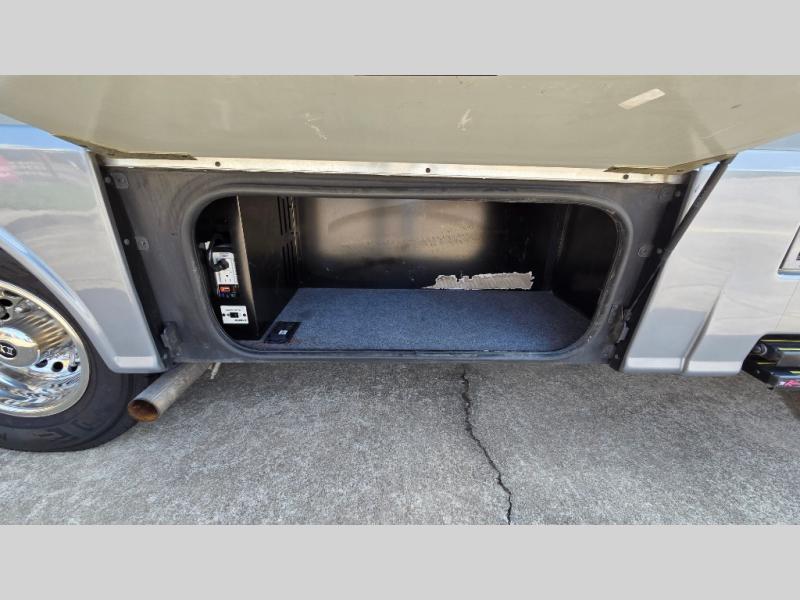 Hit the road knowing that you have all that you need at your fingertips in this Winnebago Navion Class C diesel motorhome. Creating meals and snacks will be easy in the kitchen because of the two-burner range and convection microwave oven, and the Norcold double-door refrigerator/freezer will keep all of your perishable items cold and fresh. You will also find a pantry cupboard near the refrigerator for all of your dry and canned goods, and the overhead cabinets keep your daily dishes and kitchen items easily accessible. You will thoroughly enjoy the convenience of having a rear bathroom in this coach, and the Murphy bed will prove to be a huge asset in providing extra sleeping space at night while still keeping the interior free from clutter during the day.