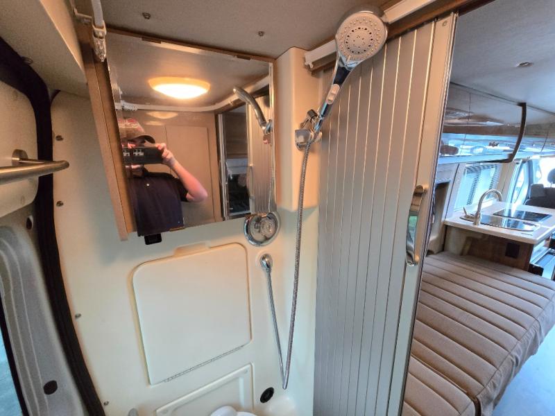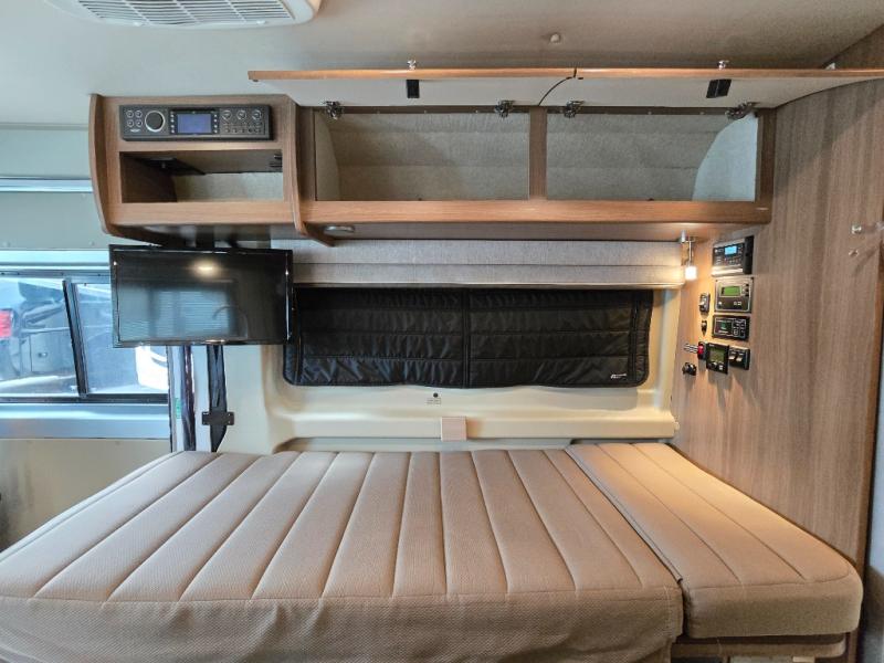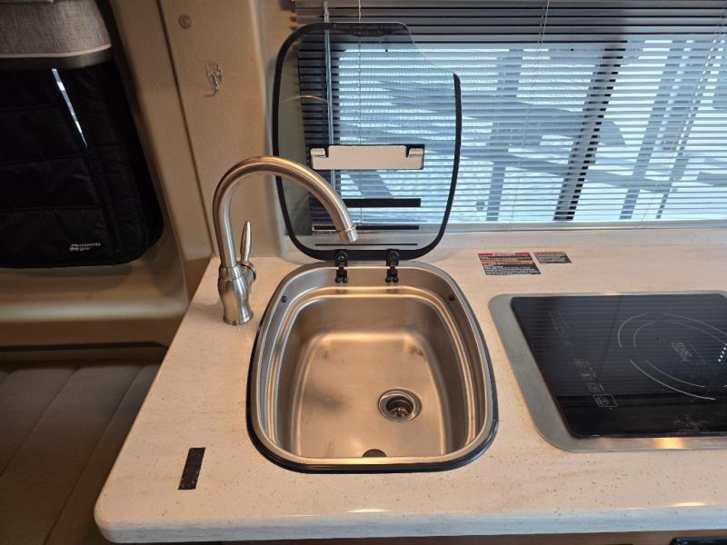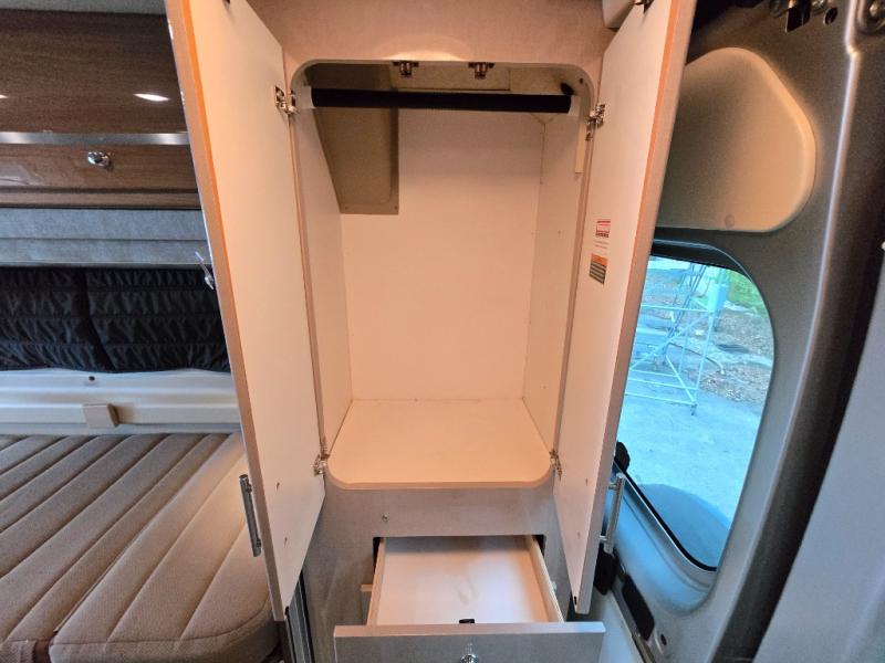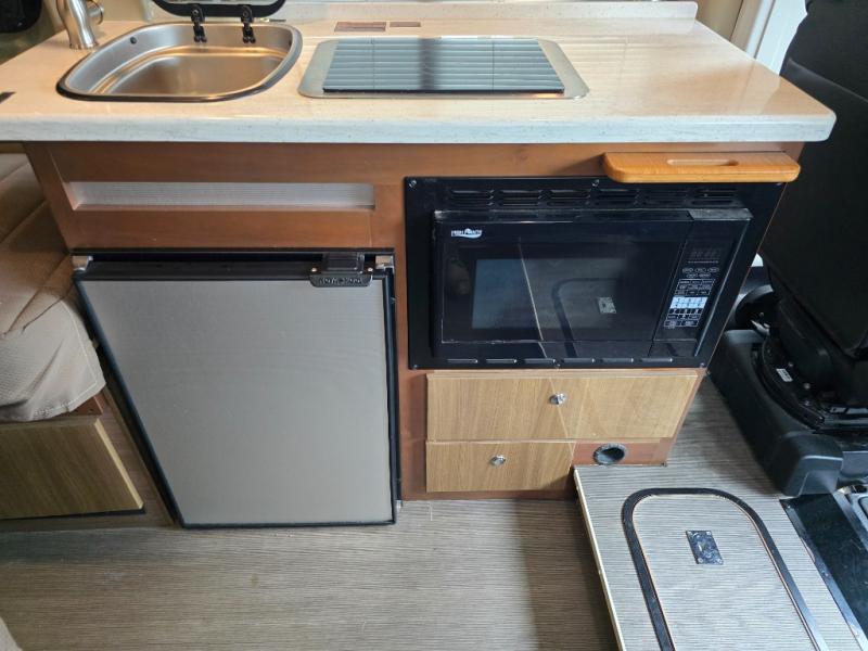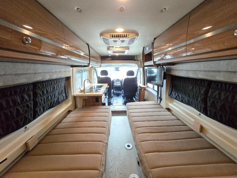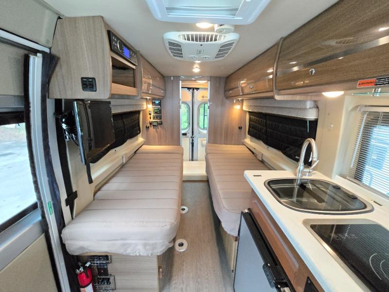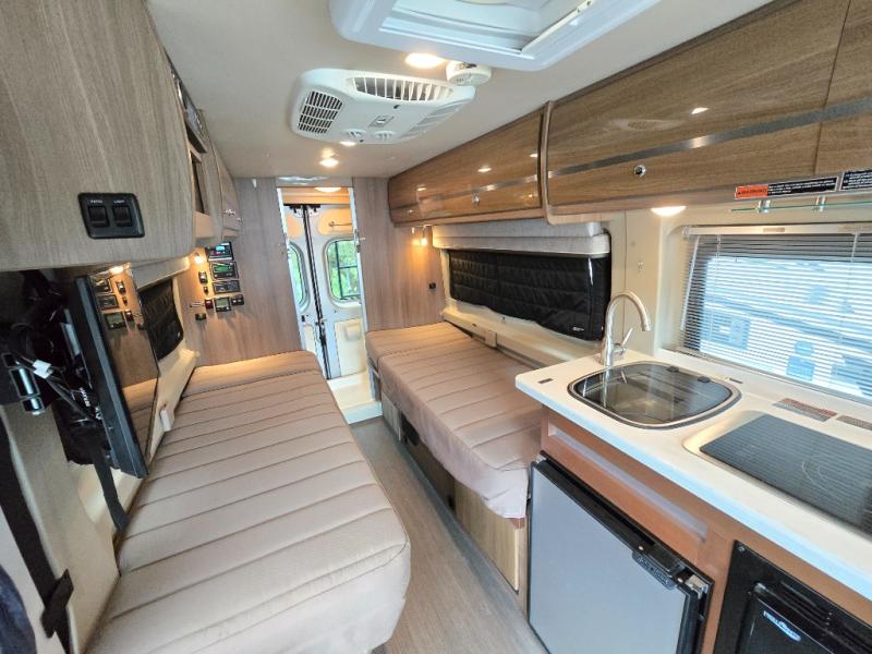 This Travato 59K is ready to hit the road when you are! Once you reach your destination you will find that both the driver and passenger seats swivel around and offer extra seating inside this motor home. In the evening enjoy watching TV or a movie at the 24" HDTV before you turn in for the night. Sleeping space can be found at the 54" x 76" flex bed system plus the two twin beds. The twin bed along the roadside is 30" x 74" while the twin bed along the opposite side is 30" x 80". You will appreciate the convenience of your own on-board wet bath and more!