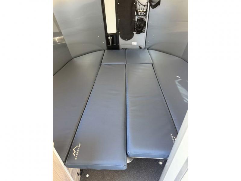 If you are seeking adventure with less hassle this Basecamp 16X travel trailer might just fit your fun lifestyle. It's easy to hitch up and provides plenty of comforts of home for off-road and off-grid adventures. The front kitchen allows you to store perishables in the refrigerator and make meals on the two-burner cooktop. Just imagine relaxing on the bench seats with two pedestal tables in between while your storage is under your seat. You can configure the sleeping arrangements into one 76" x 76" complete bed or two smaller half beds whichever you prefer. The on-board wet bath comes in handy during the nighttime and daytime, and the retractable clothes line allows you to hang a wet towel or two. This model includes the Basecamp X package which adds features and accessories that increase departure angle and durability for more all-terrain use. Check this model out!