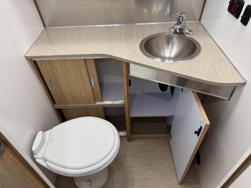 With a variety of floor plans to choose from you can easily select the Flying Cloud travel trailer that is ideal for your family. You will enjoy your view from the panoramic windows and at night you can close the Oceanair roller blinds so you have complete privacy. The enclosed aluminum insulated heated underbelly allows you to camp in all types of weather. After you are done playing outdoors then you can clean up at the exterior shower before heading inside. In the evening plan to stay outside just a bit longer and visit with your family while sitting under the patio awning with LED dimmable light. In the bathroom a fun feature is the retractable clothes line in the shower.
