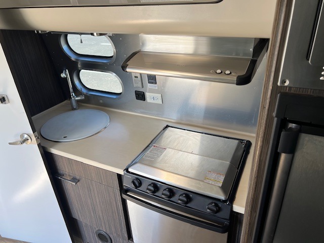 In any Airstream International Signature travel trailer you will find materials to last a lifetime and details you'll appreciate every day. You will love the views of your choosing though the panoramic front windows that also let in tons of natural light. Enjoy sleek polished surfaces like Dupont Corian galley counter-tops, premium fabrics to compliment the Ultraleather seating, and an FM/AM/CD radio with in/out Bluetooth. You will certainly also enjoy the stainless steel front stone guard protection, the torsion axle suspension, and the rear view monitoring system.