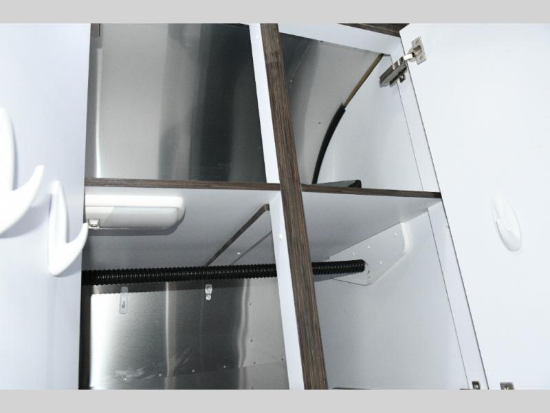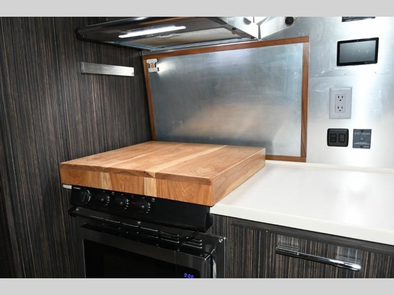 Step inside and you’re greeted by Airstream’s signature light-filled interior, thanks to the panoramic front windows that wrap the lounge in natural sunshine. The Ultraleather lounge sofa invites you to stretch out after a day of exploring, while the booth dinette offers plenty of space for meals, morning coffee, or converting into an additional sleeping area for guests.