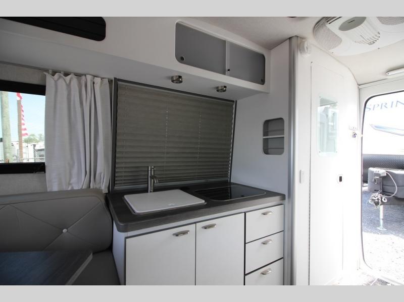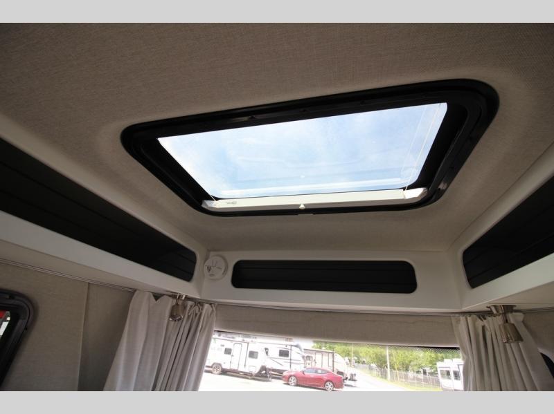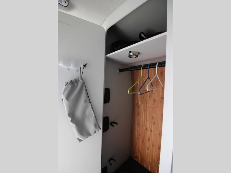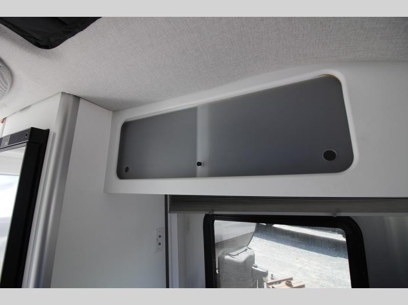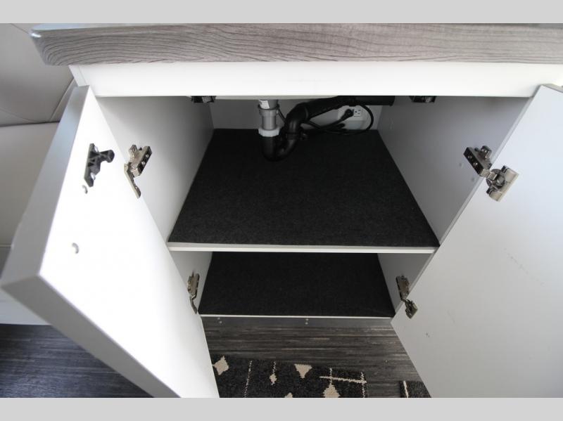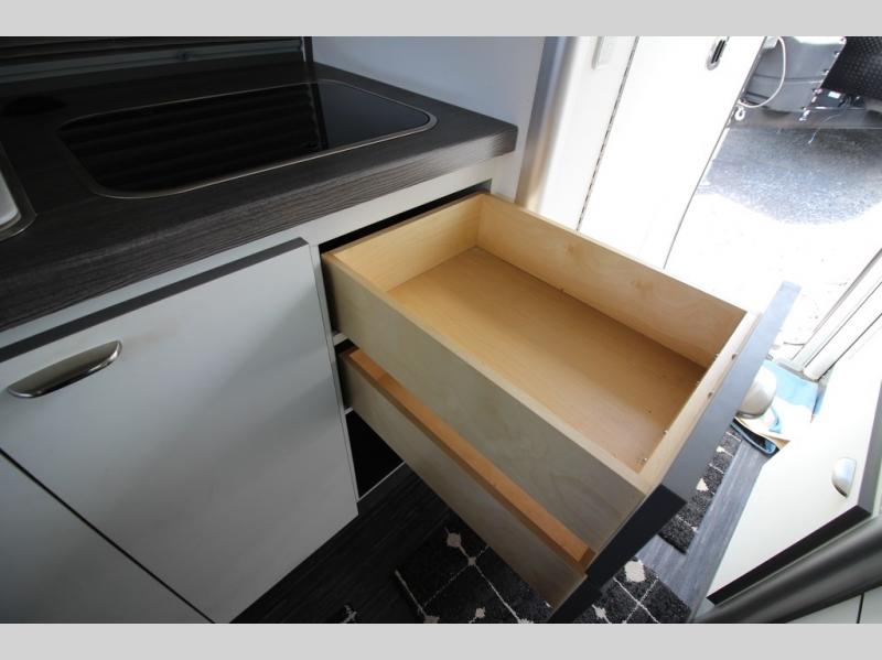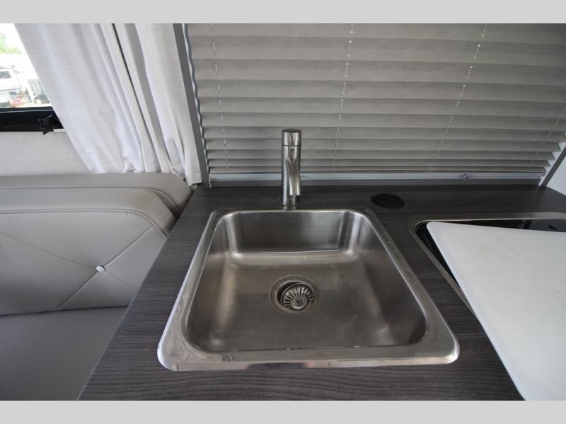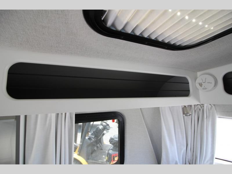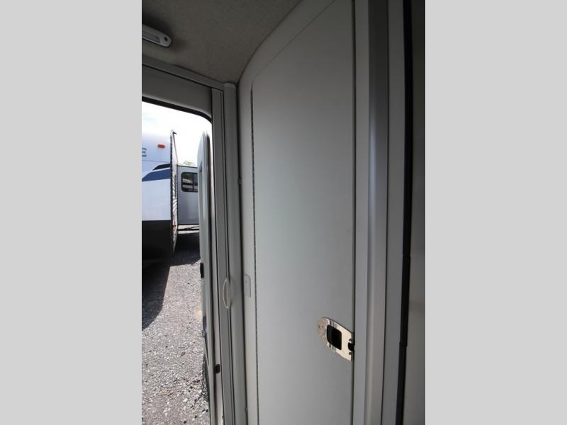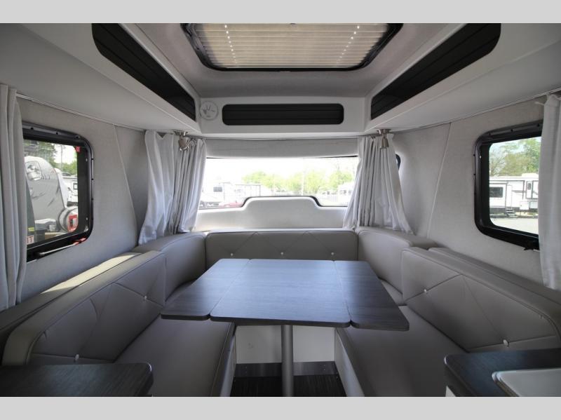 With any Airstream Nest travel trailer you are getting an easy to manage modern designed unit with all the comforts of home. You will find maximum storage throughout each model including overhead cabinetry and under bed storage for larger items, as well as two lockable storage compartments on the exterior. Inside each Nest travel trailer, you will enjoy LED lighting. There is also an abundance of natural light that streams inside through eight windows, including one skylight. Seamless vinyl flooring, along with fingerprint and stain resistant soft white laminate, means easy care maintenance during and after each trip. And, easily accessible pop-up USB ports are located in the galley/dinette area, as well as near the bed so you can keep all of your electronics charged and ready to use. For your outside enjoyment, there is a powered patio awning with LED lights which makes it easy to enjoy time outside even after dark. There is also an exterior shower with hot and cold faucets so you can rinse off any evidence of outdoor fun before heading inside. Let a new Airstream Nest be your new cozy retreat for two!