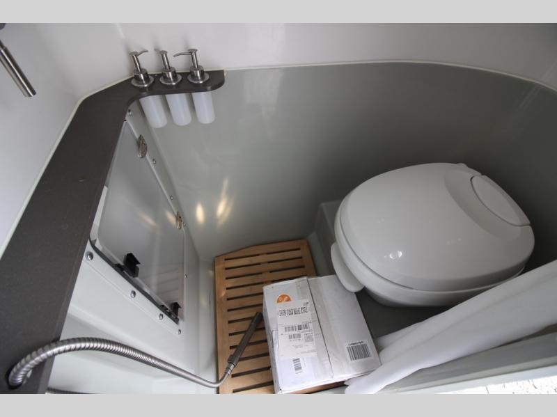 Are you ready to nestle yourself and your mate into a cozy environment surrounded by the beauty of nature? With this Airstream Nest travel trailer you can. You will love the six side windows, skylight, and vertical window on the rear entry door to bring in tons of natural lighting, plus a great view of your surroundings. When you need a bit of privacy you can easily draw the blackout shades closed. A 58" x 80" queen bed is ready when you are for a welcome slumber on the Tuft & Needle foam mattress provided. When you wake in the morning you will find the rear corner wet bath a welcome space to get refreshed and ready for wherever your day takes you. Whipping up a favorite meal or snack is also easy with the kitchen amenities provided. You will enjoy a 3.2 cu. ft. refrigerator, a two-burner cook-top, and microwave oven. This unit also provides ample storage throughout.