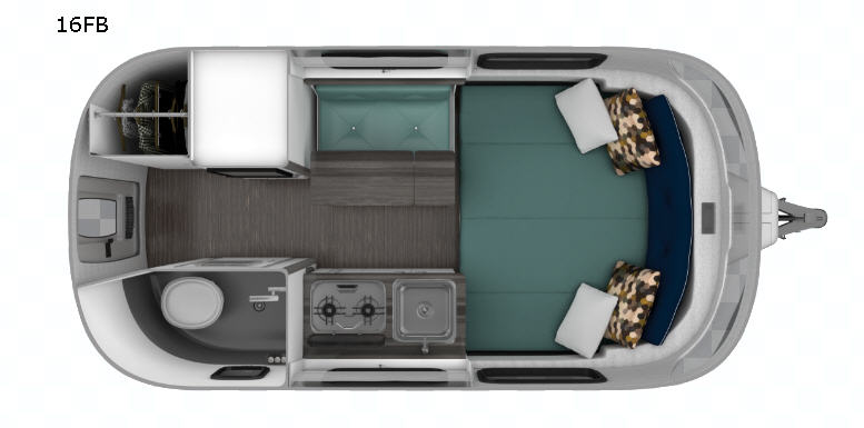 With any Airstream Nest travel trailer you are getting an easy to manage modern designed unit with all the comforts of home. You will find maximum storage throughout each model including overhead cabinetry and under bed storage for larger items, as well as two lockable storage compartments on the exterior. Inside each Nest travel trailer, you will enjoy LED lighting. There is also an abundance of natural light that streams inside through eight windows, including one skylight. Seamless vinyl flooring, along with fingerprint and stain resistant soft white laminate, means easy care maintenance during and after each trip. And, easily accessible pop-up USB ports are located in the galley/dinette area, as well as near the bed so you can keep all of your electronics charged and ready to use. For your outside enjoyment, there is a powered patio awning with LED lights which makes it easy to enjoy time outside even after dark. There is also an exterior shower with hot and cold faucets so you can rinse off any evidence of outdoor fun before heading inside. Let a new Airstream Nest be your new cozy retreat for two!