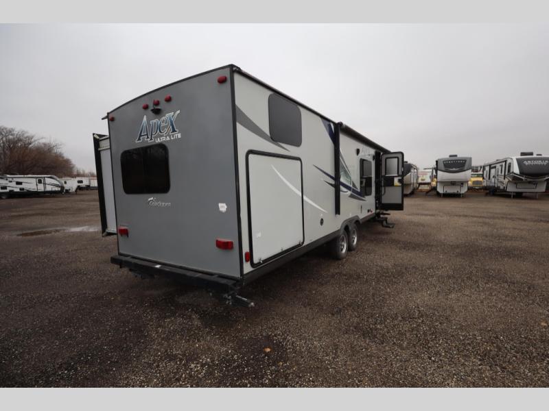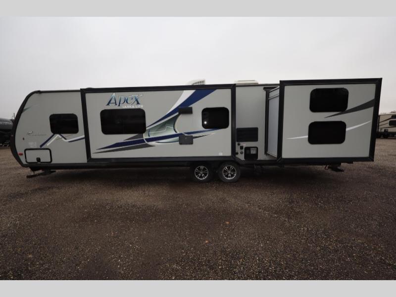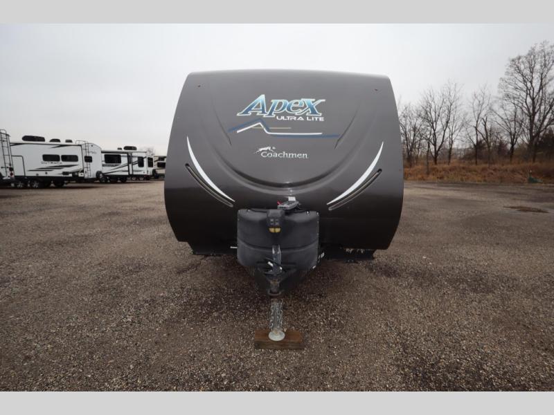 The Coachmen Apex Ultra-Lite unit is a quality lightweight travel trailer that is eco-friendly with innovation throughout. Each model is built with an Aluma-cage construction, plus vacuum bond Azdel/fiberglass walls and a laminated crowned roof. The inside includes stainless steel appliances, energy efficient LED interior lighting throughout, and a USB charging station to keep the devices ready for more adventures. It's time to find the perfect model for you, and start enjoying each camping trip!
