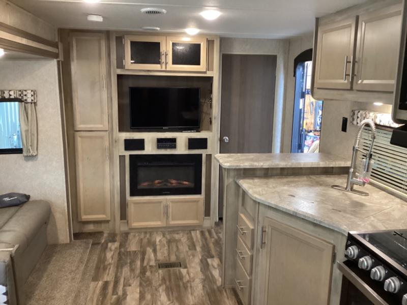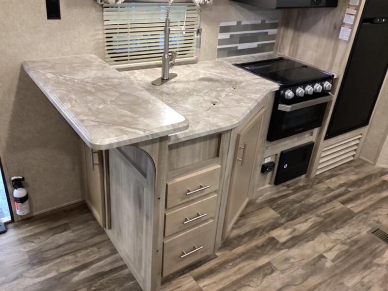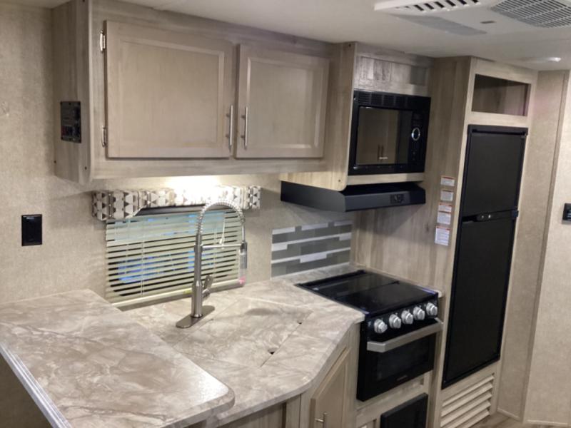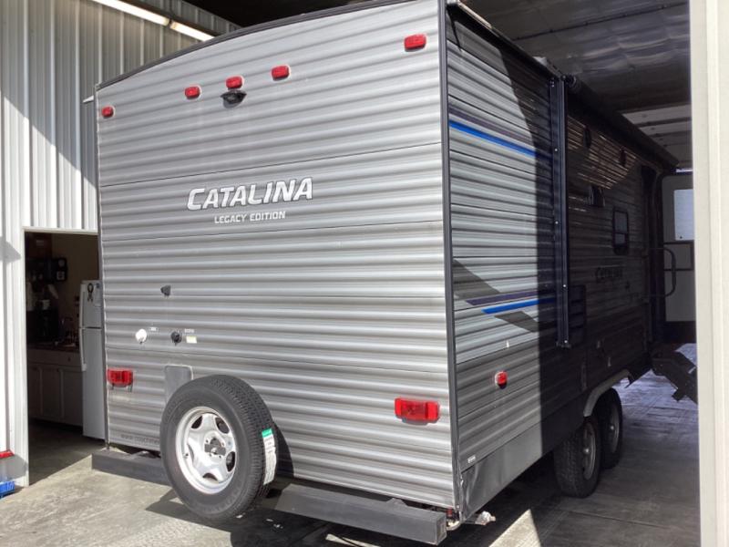 For any camping trip whether near or far, you will want this single-slide Catalina Legacy travel trailer. After you set up camp, then come relax inside at the booth dinette or sofa which can both convert into additional sleeping space at night. Mom and dad can retreat to the private bedroom where there is a queen-size bed. In the kitchen there is a breakfast bar where you can begin your morning with a bowl of cereal after getting ready for the day in the rear bathroom which features a 34" x 34" radius shower with a glass door. Outside there is a 15' electric awning with LED lights which provides plenty of shade during the day, and in the evening you can sit under the awning to visit with family and friends just a bit longer.