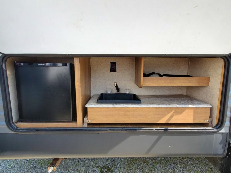 This Catalina Legacy travel trailer is ideal for any family who enjoys a weekend away at a nearby campground. In the bathroom there is a full bathtub which makes rinsing off after a long day at the lake quite easy! The opposite corner from the bathroom features a set of double-size bunks. Come relax and visit with your family at the U-shaped dinette or the sofa. A handy coat closet is near the entry door, and as you head outside you will enjoy the shade from the 18' electric awning with LED lights. If you want to grill some hot dogs or hamburgers, then you will want to head outside to the outdoor kitchen!