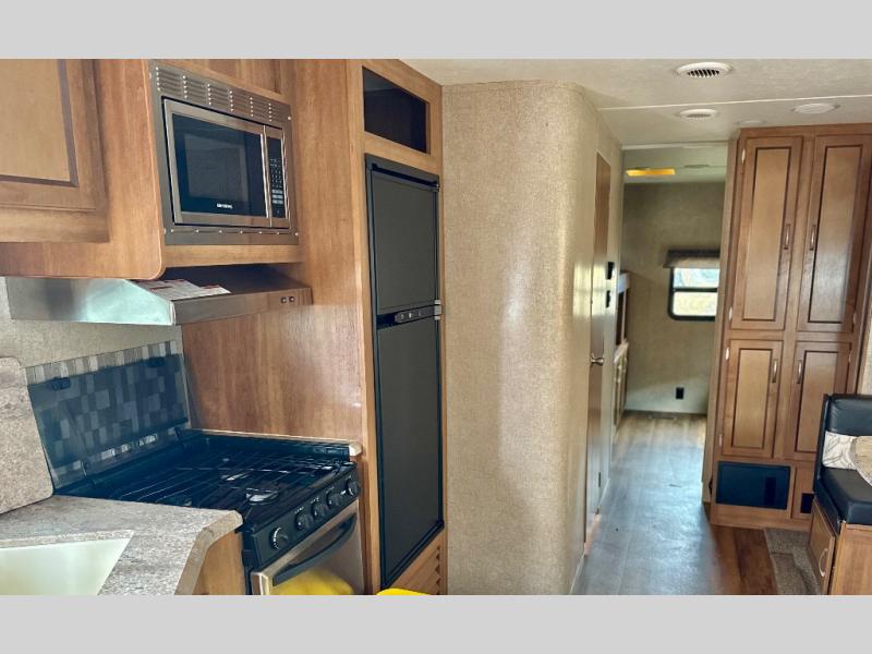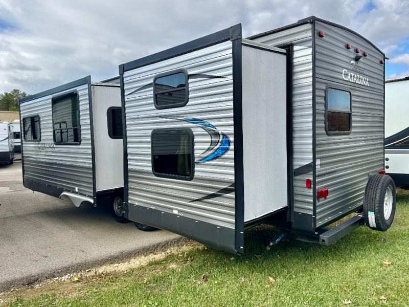 Take the whole gang camping in this double-slide Coachmen Catalina Legacy Edition travel trailer. Inside of this model you will enjoy sleeping for nine, plus with the double entry doors you will have easy access to the bathroom without having to walk through the whole trailer. Outside you are sure to enjoy the convenience of the outdoor kitchen. Also outside is a 21' electric awning with LED lights which creates a nice area to sit and enjoy the weather. For all of your extra camping gear you can store it in the pass-through storage area.