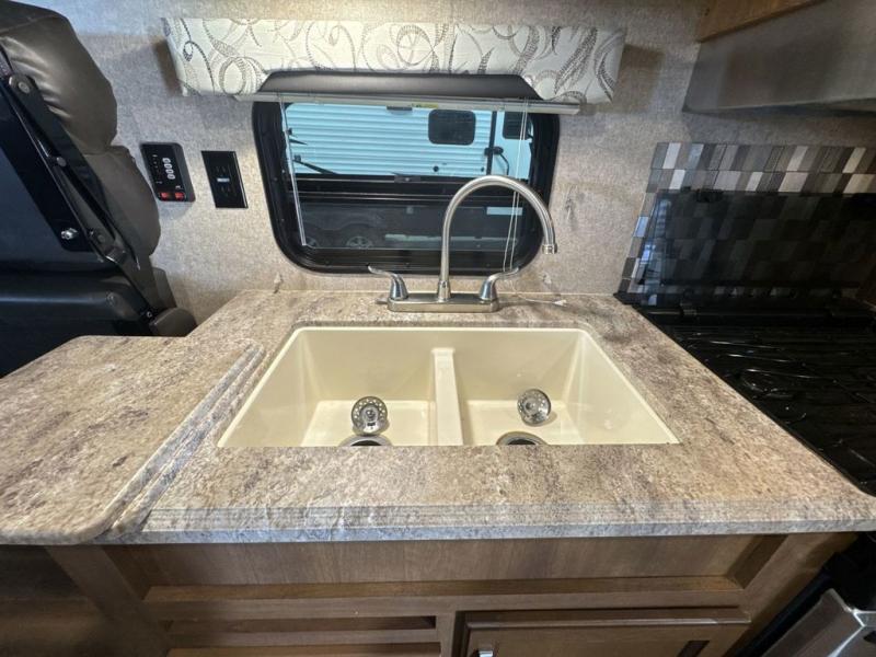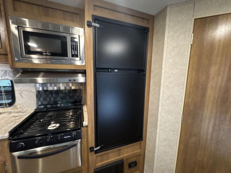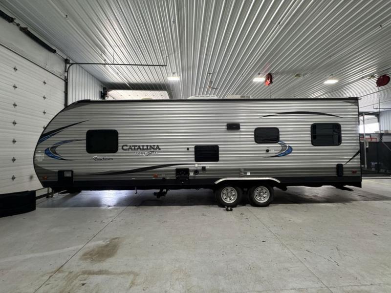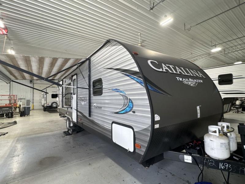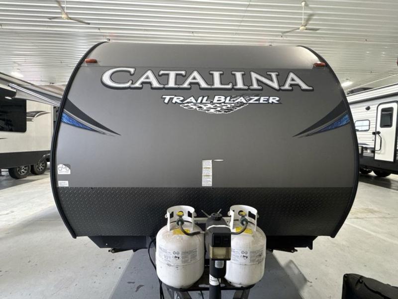 Coachmen RV has done it again with the Catalina Trail Blazer's! These toy hauler travel trailers each have a large ramp door for easy loading and unloading of your toys, plus there is a Toy Lok system that helps to keep everything in place. The exterior utility shower is super helpful after a long day of mudding, which means you can rinse off before dragging mud throughout the trailer. There is also a front diamond plate, back-up camera prep, and a fully enclosed underbelly to ensure safety as you travel. Inside you will love all of the at home features like the LED lighting, the residential pull down faucet to make your clean up easier, and the Furrion DVD/mp3/FM Stereo w/ Bluetooth and USB Charging Port, plus there is an upgraded in-wall speaker system. So, come check out the Coachmen Catalina Trail Blazer toy hauler that best suits you!