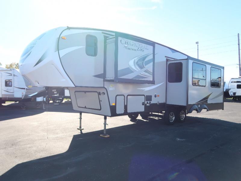 The Coachmen Chaparral Lite fifth wheels have been specifically designed for people that enjoy the RV lifestyle, as well as the comforts of home, but don't want to purchase a huge gas guzzler to pull it all! The Chaparral Lite is big living in a small package. Any Chaparral Lite model can easily be towed by many of today's half-ton pickup trucks. The combination of an aluminum-framed construction and Turn Tec Engineering has taken this experience to a whole new level, and with the modern styling on the interior and the elegant decor, you will find that the Chaparral Lite has been designed to meet and exceed your every expectation.