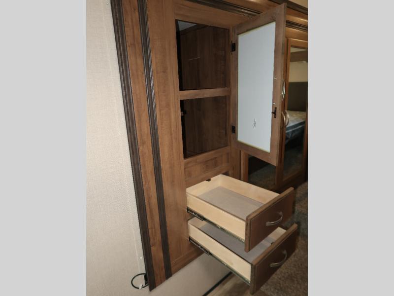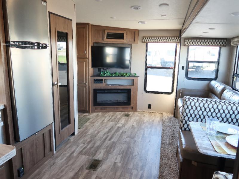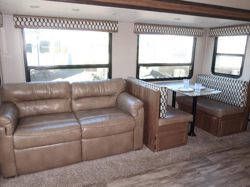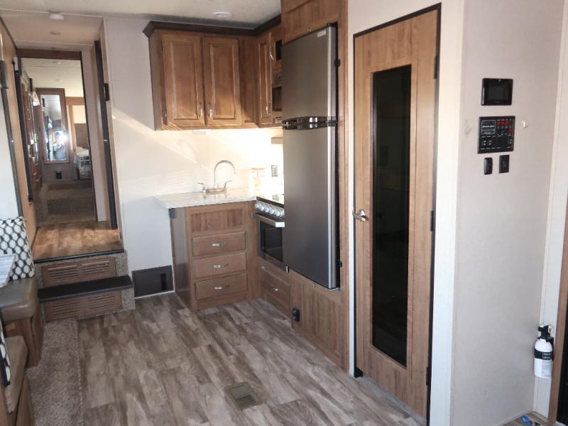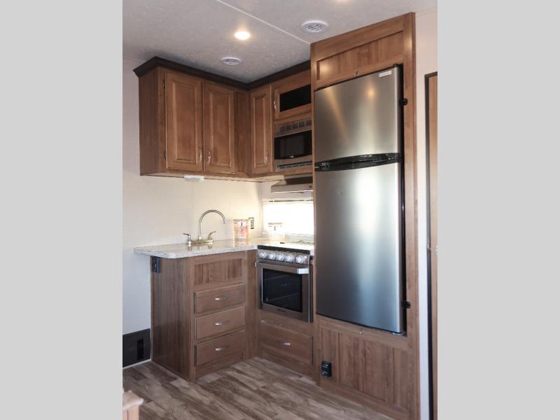 Don't spend another moment traveling in moderate accommodations when you can have exceptional charm and quality with this Chaparral Lite fifth wheel! Comfort, class, and convenience are all a part of this model's packed-out interior. The queen-size bed in the master suite will deliver night after night of restful sleep, and the wardrobe slide will provide a home for all of your travel belongings. You won't need to plan your trip around food stop locations because the 21" stainless steel oven and residential cooktop in the full kitchen will allow you to prepare all of your favorite dishes whenever you like.