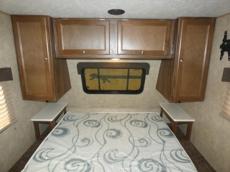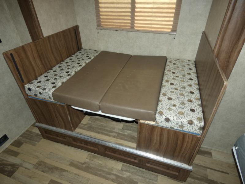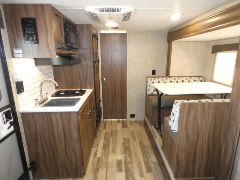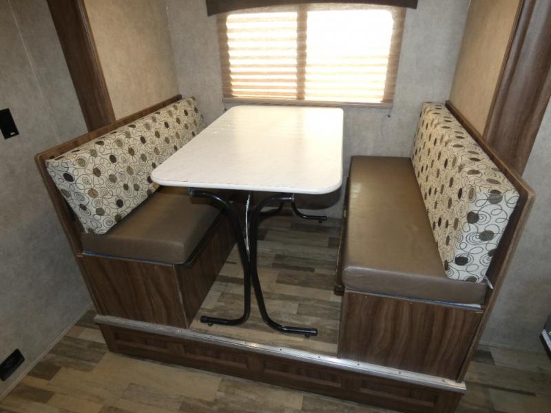 This model allows you to travel to see new places with the comfort of your own full bath, your own bedding at night, and a kitchen to make meals. Imagine a dinette slide out offering more floor space to move about, plus a place to work on a puzzle or read a book. It's time to see why this trailer is perfect for your traveling needs and wants!