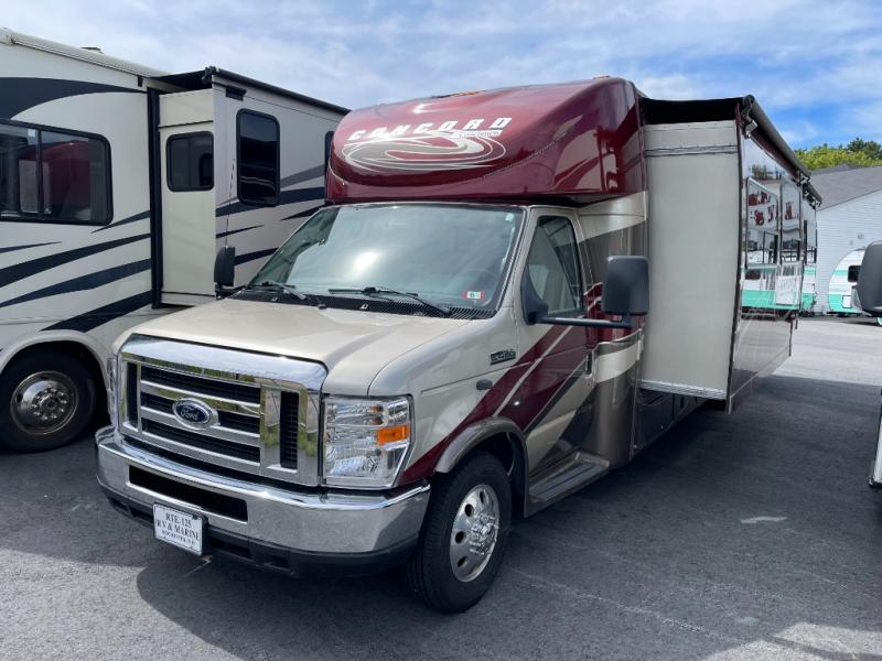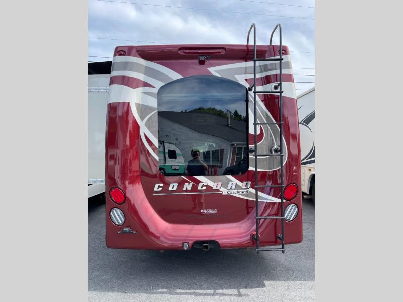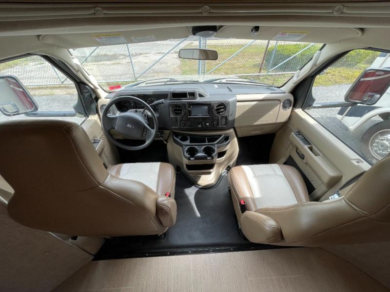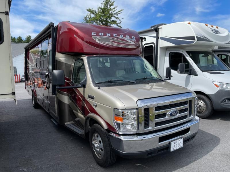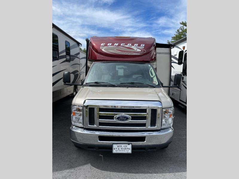 With the Concord class C motorhome by Coachmen RV, you have your choice of chassis; either a Chevy 3400 V8-6.0L or a Ford 3_450 V10-6.8L. Each unit includes a 4.0KW Onan gas generator, an Intellitec Command Center, plus a power awning with vinyl weather guard and LED lights. Some of the interior features you are sure to love are a flush mount, double door dometic refrigerator, an upgraded Serta mattress, and a skylight over the shower, plus much more. These units also include Even Cool A/C, a residential duct work system that allows a more efficient and quite way to cool off your whole motorhome.