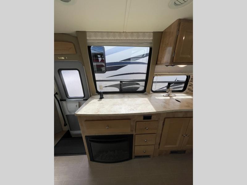 Step inside this Concord 300DS Ford motorhome for a spacious and relaxing trip to your local state park or even across the country. The large slide out in the living area allows everyone to stretch out and here you'll find a u-shaped dinette and a sofa that can both be converted to additional sleeping space, which allows this unit to sleep six people comfortably. After traveling to your destination all day, the chef of the family can prepare a meal on the three burner cooktop while the kids watch a movie on the 32" TV! Mom and dad will love the walk-through bath that leads to the rear private bedroom with a slide out queen bed for a great night's rest.
