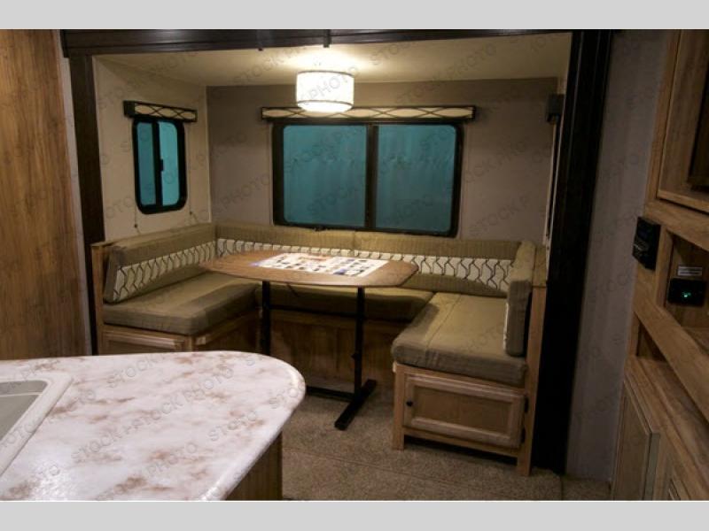 Step inside and you’ll immediately appreciate the thoughtful floorplan that maximizes usable space without feeling crowded. The 231RBDS features a rear bunkhouse that’s ideal for kids, guests, or extra storage, while the front bedroom offers privacy and cozy comfort at night. The main living area includes a convertible dinette and a comfortable sofa, creating a welcoming gathering spot for meals, games, or movie nights after a day of hiking or exploring.