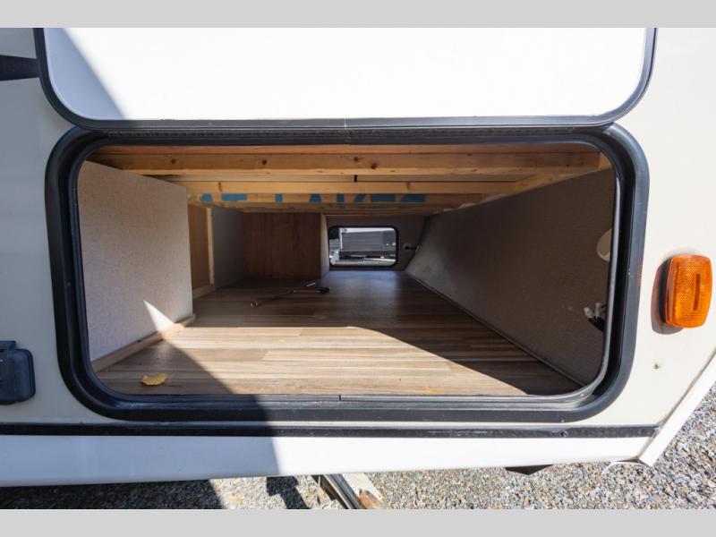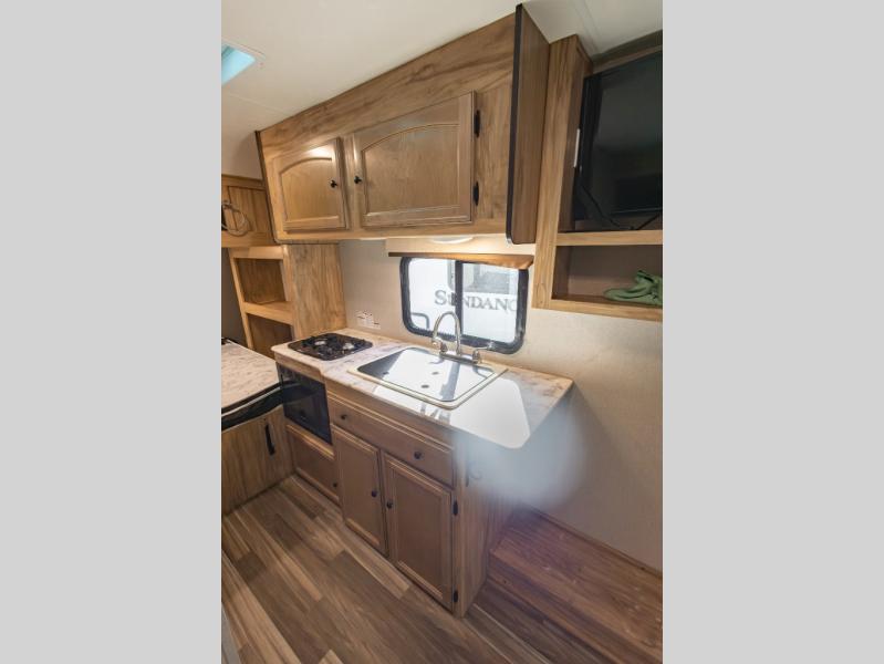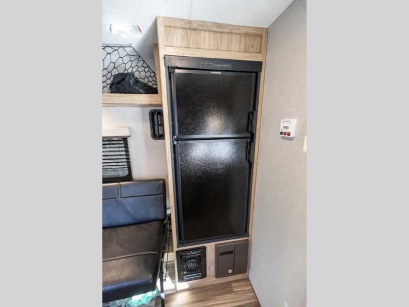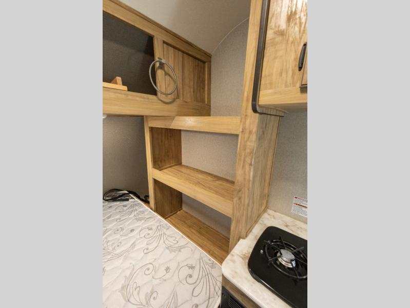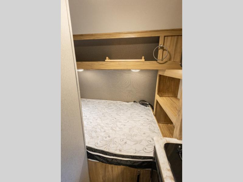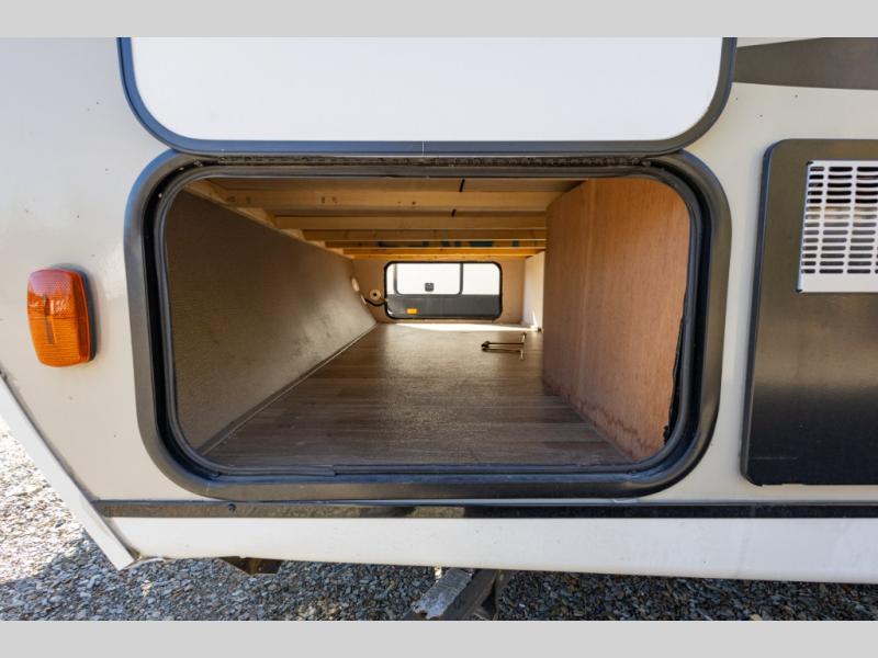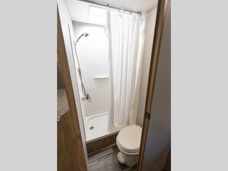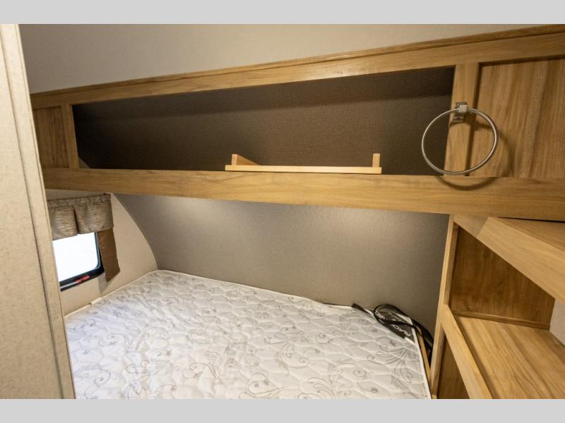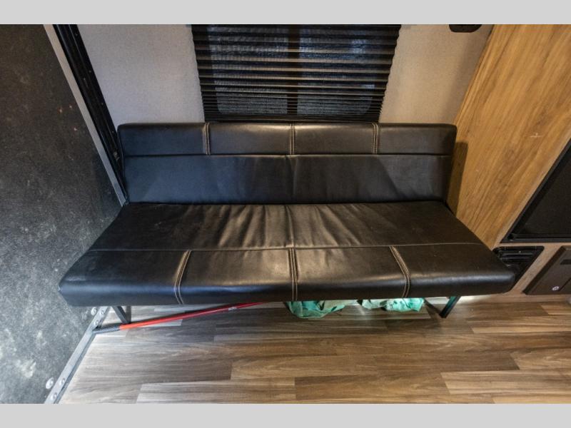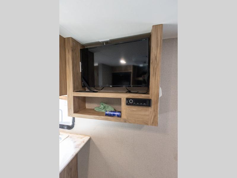 Stop imagining how much fun you will have with your off-road toys, and load up this travel trailer to hit the dunes. Once at your destination, you can easily set up the inside before taking off with your toys. The rollover sofa and free standing indoor/outdoor table allow you to dine and chill out while watching the 32" HDTV. You can get cleaned up in the private shower and toilet room before falling asleep on the 54" x 80" queen bed. You will find plenty of storage for your gear on the shelves, inside the cabinets, and outside in the pass-through compartment. You can even make meals if you like. Step inside, and start imagining where all you will take this toy hauler.