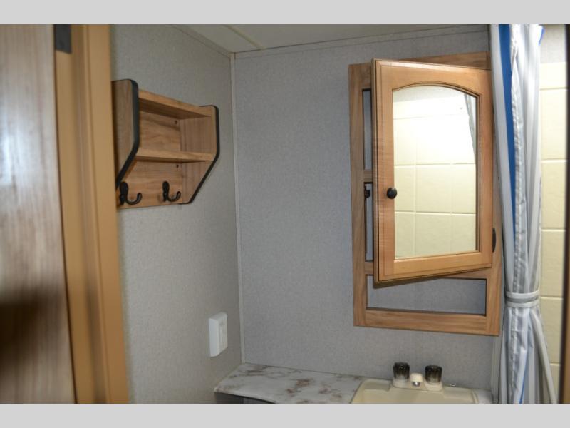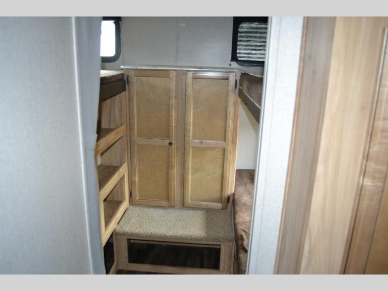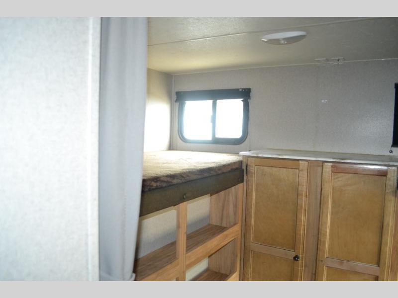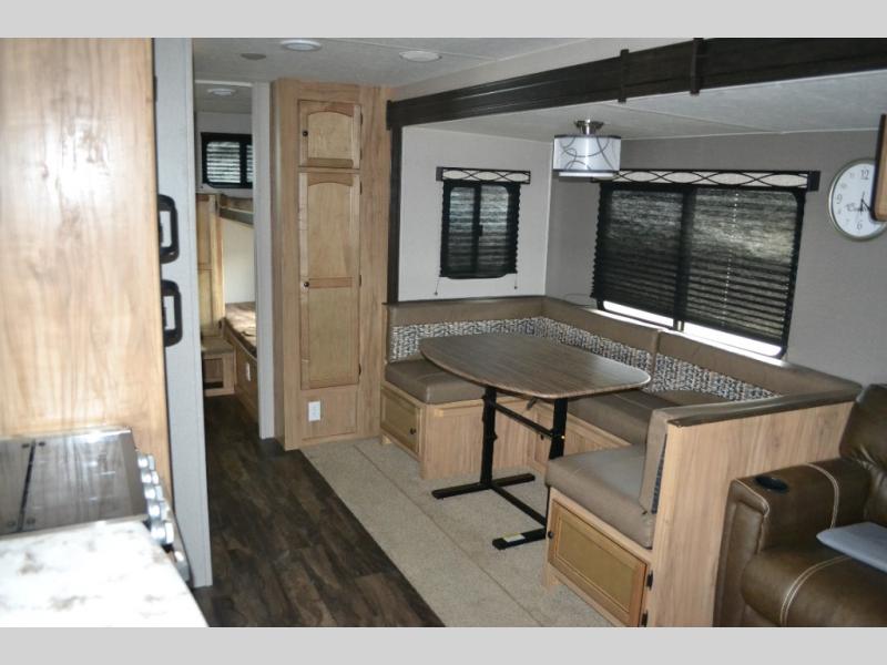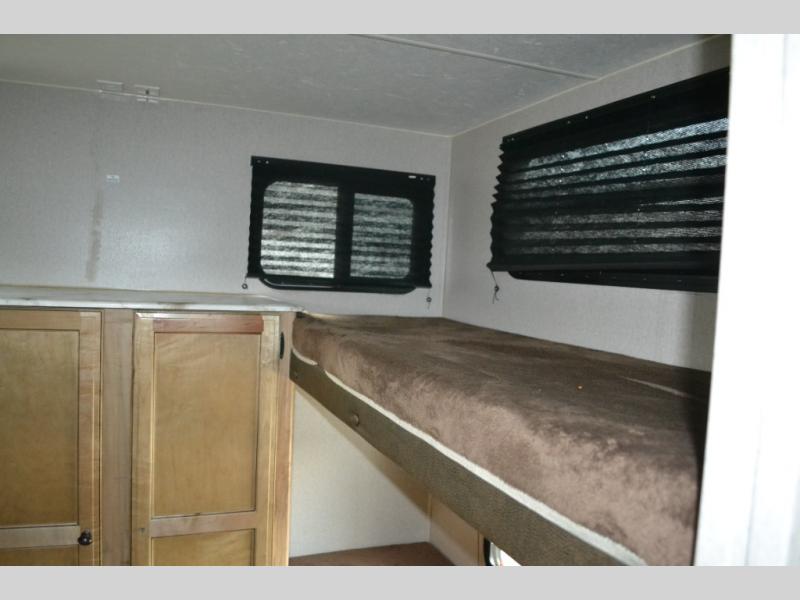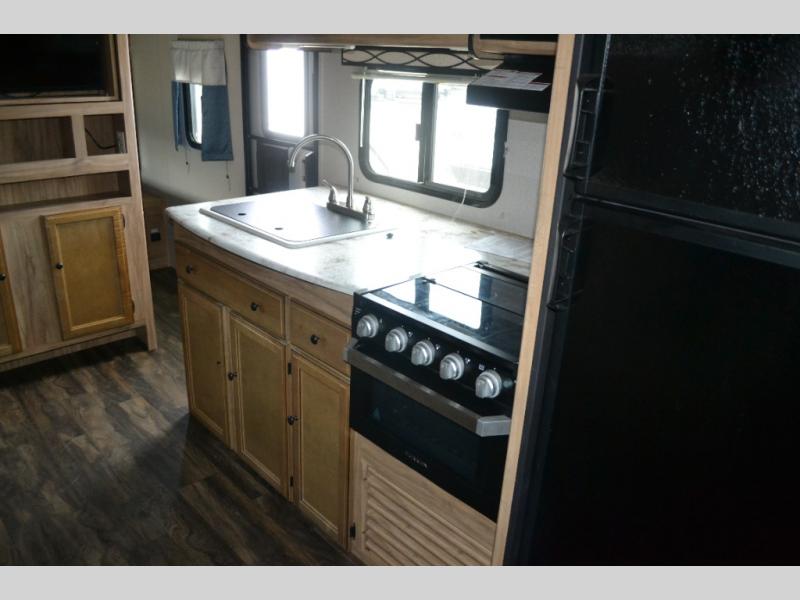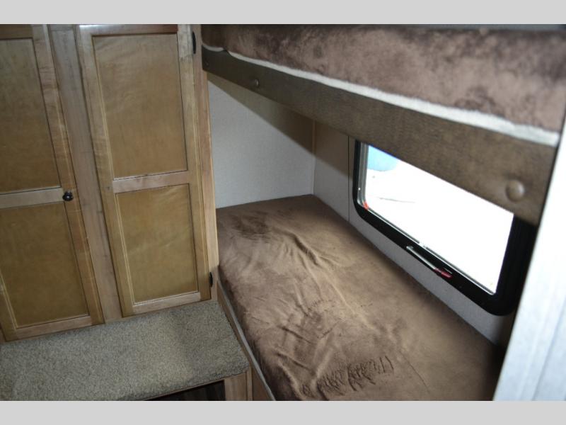 If you have been searching for a travel trailer to accommodate the whole family plus a few extra friends, stop looking! This Freedom Express Maple Leaf Edition bunkhouse model offers sleeping space for ten plus so much more. When you aren't playing outside everyone can gather in the living area around the u-shaped dinette and hide-a-bed sofa within the slide out while mom or dad makes snacks. The chef of the family can prepare breakfast on the three burner range or outside at the camp kitchen if the weather is nice. At night you will probably find the kids and their friends in the bunkhouse on the four bunk beds. This unit also includes plenty of storage, including a pass through storage, a pantry, and overhead cabinets.