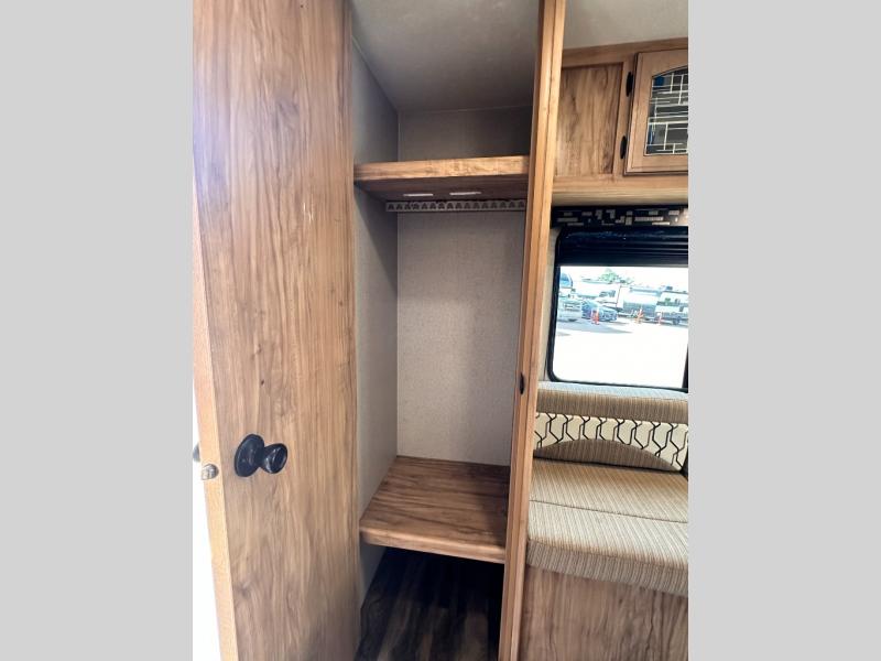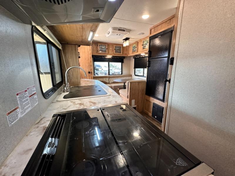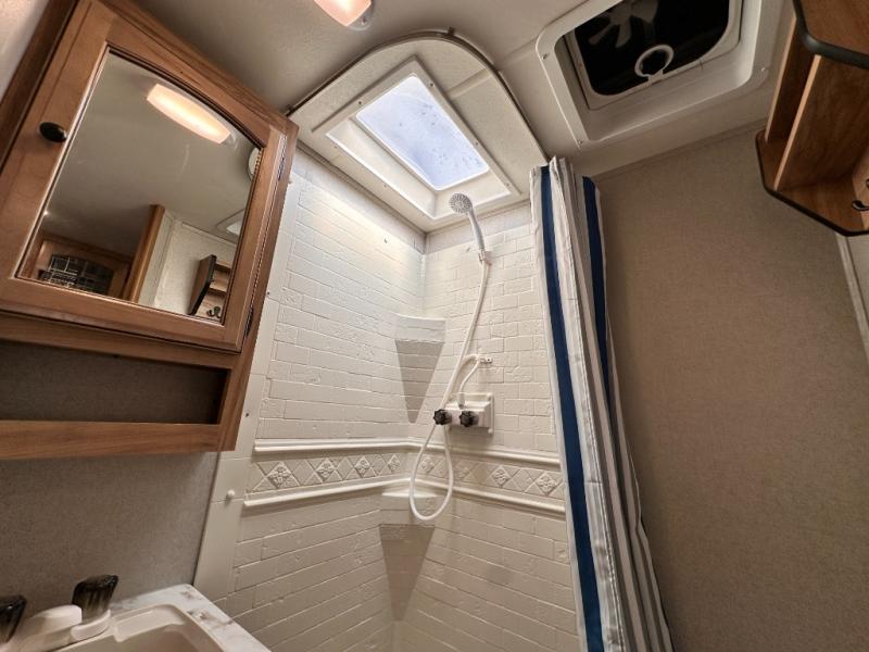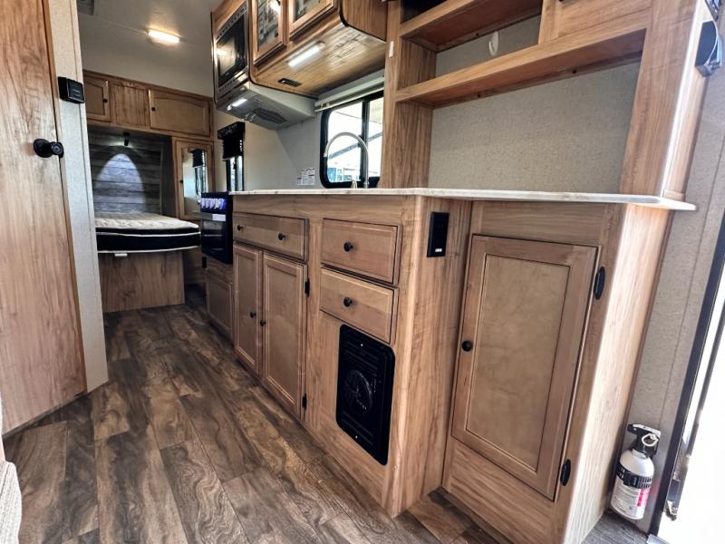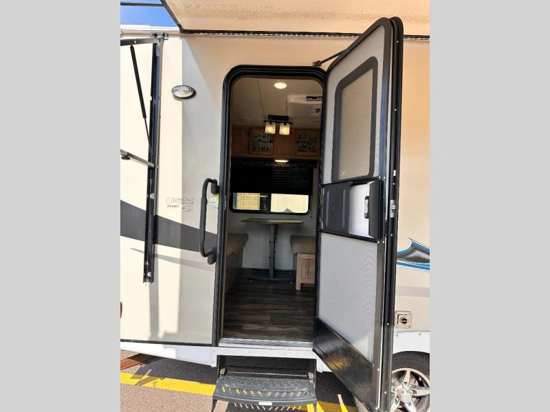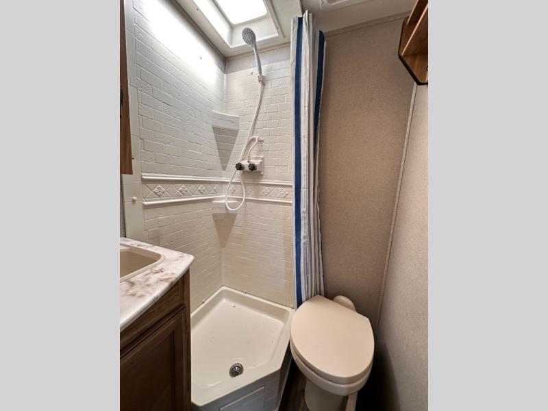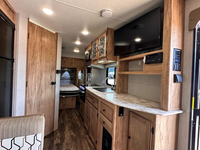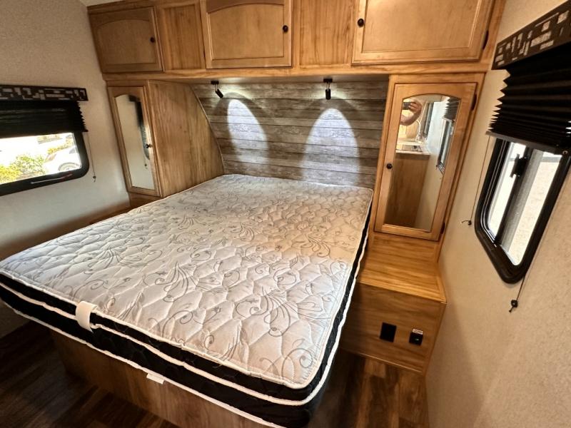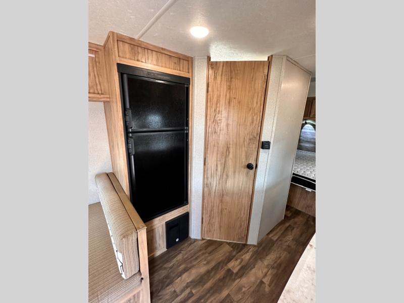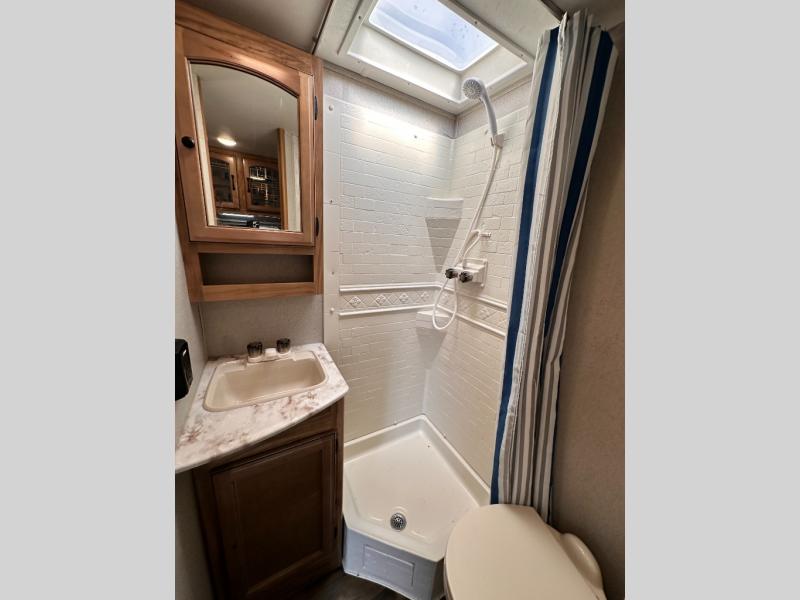 Start your next vacation right in this travel trailer that will comfortably sleep four people each night either on the queen bed up front or the dinette once folded down. This unit is satellite ready and includes USB ports to keep your electronics charge the whole trip. The family can eat meals and play cards at the booth dinette that features an extended dinette cushion for more seating space. The centrally located full bath includes a shower skylight for more natural light and extra standing room!