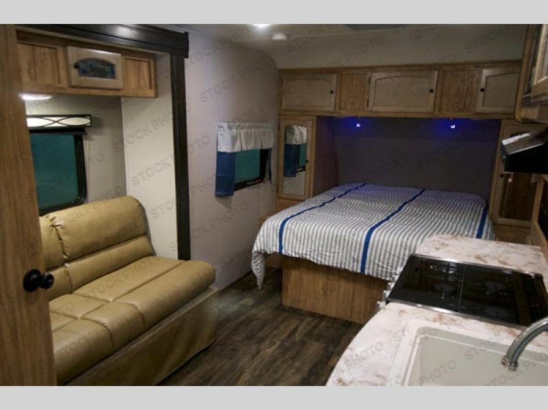 The well-appointed kitchen ensures you never have to sacrifice home-cooked meals while traveling. Prepare full dinners on the three-burner range, heat up quick snacks in the microwave, and store fresh ingredients in the 6 cu. ft. double-door refrigerator. Smart cabinetry keeps everything organized so you can focus on enjoying your trip.