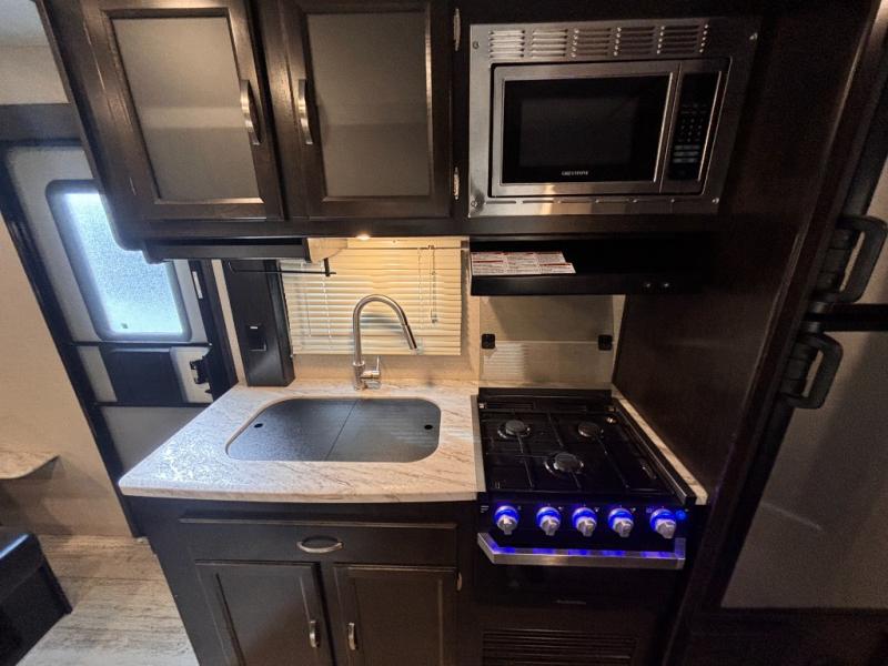In every one of these Coachmen RV Northern Spirit Ultra Lite travel trailers, you will find the right features in the right places to give you a simplified camping experience! The exterior pass-through storage space provides easy access to all of your camping gear with a section specifically designed to hold your fishing rod. There are other well designed storage areas throughout the inside too like the valuables hutch on select models, the tool center, the sink cover storage, and the kids convenience center with a USB port, a 110V outlet, and a reading light. You can even bring along your furry friends on your next vacation with handy features like the exterior dog wash station, the exterior dog leash clip, and the interior pet center for their feeding dishes. Come check out the many more luxurious features throughout the inside and outside of these Coachmen RV Northern Spirit Ultra Lite travel trailers!