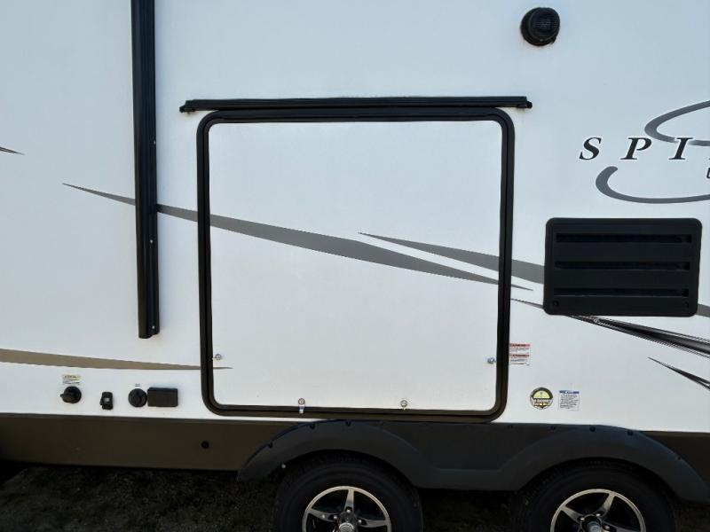 In every one of these Coachmen RV Northern Spirit Ultra Lite travel trailers, you will find the right features in the right places to give you a simplified camping experience! The exterior pass-through storage space provides easy access to all of your camping gear with a section specifically designed to hold your fishing rod. There are other well designed storage areas throughout the inside too like the valuables hutch on select models, the tool center, the sink cover storage, and the kids convenience center with a USB port, a 110V outlet, and a reading light. You can even bring along your furry friends on your next vacation with handy features like the exterior dog wash station, the exterior dog leash clip, and the interior pet center for their feeding dishes. Come check out the many more luxurious features throughout the inside and outside of these Coachmen RV Northern Spirit Ultra Lite travel trailers!