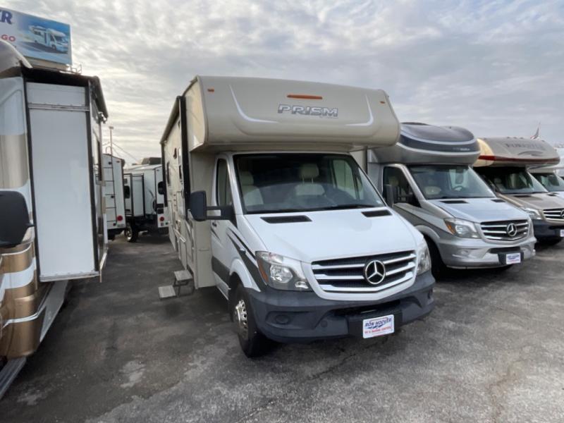 Dreaming of having a comfortable place to go during your kid's track meet while you wait for him to compete? Do you long for a vacation but prefer to sleep on your own bed? It's time to jump into this Prism 2150 CB class C diesel motor home and hit the road. You will find the journey is as comfortable as the sleeping arrangements. Everyone can gather around the U-shaped dinette for meals or a card game, lay on the cab-over bunk or visit outside under the 16' power awning with a vinyl weather guard and LED lights. You will appreciate the convenience of a private shower and toilet in the rear bath, plus a bathroom sink just outside the door. And the cook will surely love heating up leftovers in the residential microwave oven for quick meals when on the go. Come see why this RV just makes sense!