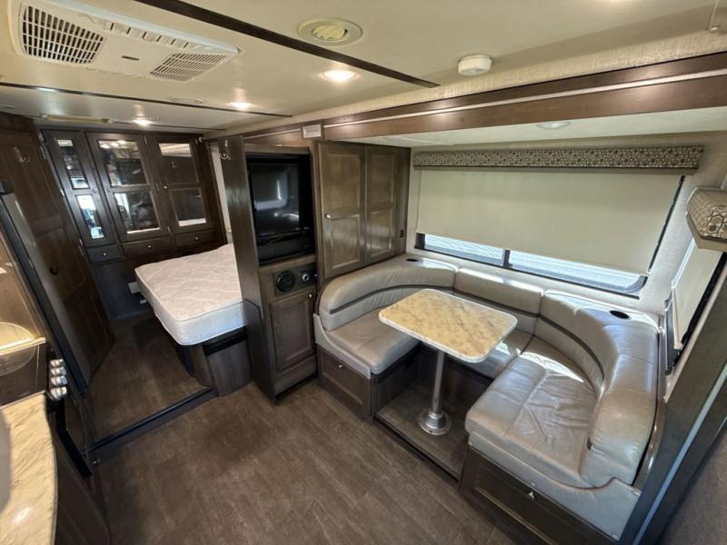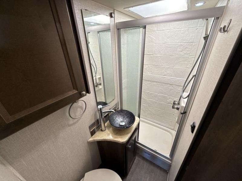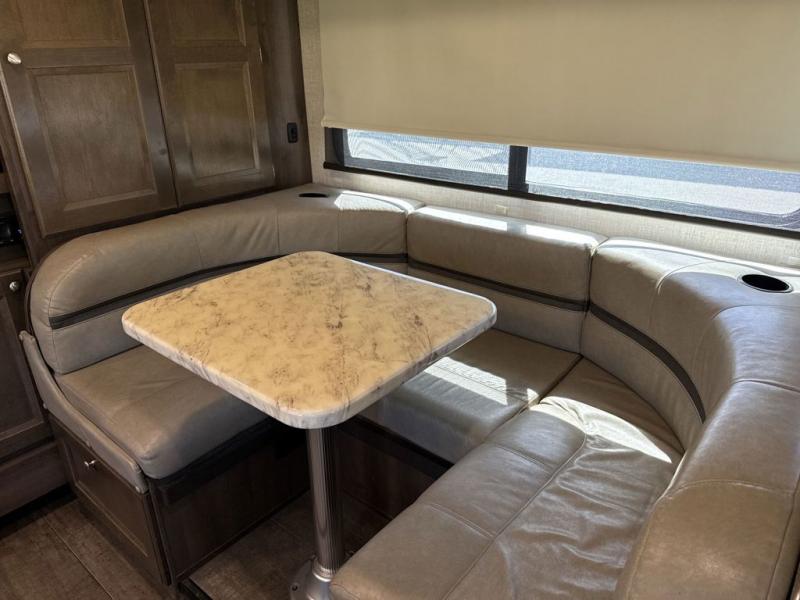 Do you dream about traveling to far destinations and enjoy attending events with the comforts of your own accommodations? Just envision drinking your coffee while sitting in the driver and passenger seat with a pedestal table between while planning your day. You can also rest on the queen bed while the kids and your guests sleep on the cab-over bunk and U-shaped dinette. Everyone will appreciate the convenience of a private bathroom no matter where you travel. And the cook will surely love heating up leftovers in the convection microwave for quick meals when on the go. Come see why this RV just makes sense!