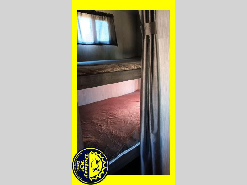 Take the whole gang and enjoy your next adventure with this Cruiser Aire hitched and ready to roll! With sleeping space for eight, plus a bath and a half, you are sure to enjoy any family get-a-way! The combined living and kitchen area provides plenty of space to gather for meals or family game night. The kids will love that they can invite a few friends with the 48" x 74" bunks to provide plenty of sleeping space. And, a private master bedroom offers a quiet retreat away from the activities down on the main level by providing a king bed for a great night's rest, plus plenty of storage space for your things. This unit also allows you the choice of replacing the booth dinette within the large slide with a free standing table and chairs if you like.