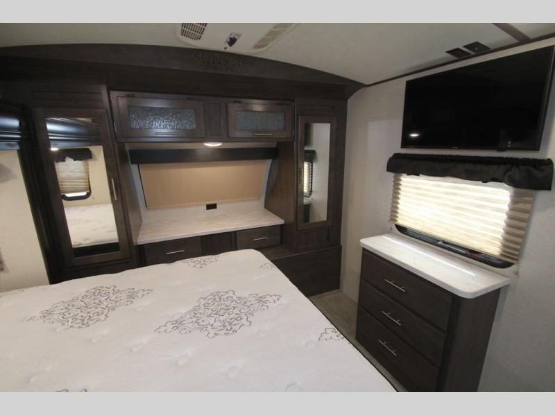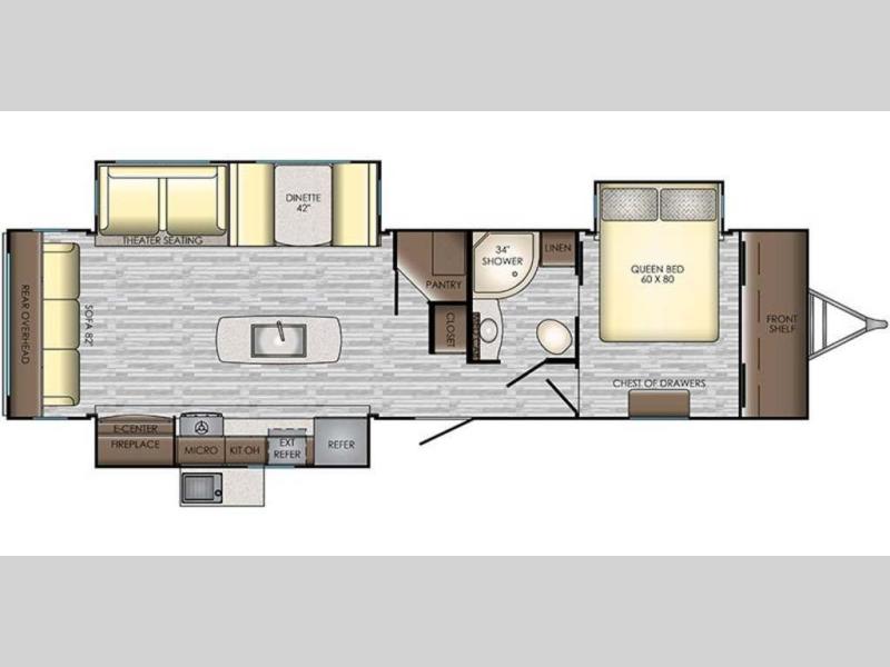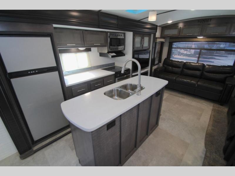 For a little rest and relaxation from the busyness of life you will want to camp with this triple slide out Sunset Trail Grand Reserve SS33SI travel trailer. Meal prep can be done either inside or outside. When you choose to use the inside kitchen you will find that it is is fully equipped with a three burner range, an island with a double sink, plus there is a large pantry. The outside kitchen features a pull out cook top. You will enjoy all of the storage space throughout from the overhead cabinets to the bedroom wardrobes and chest of drawers!