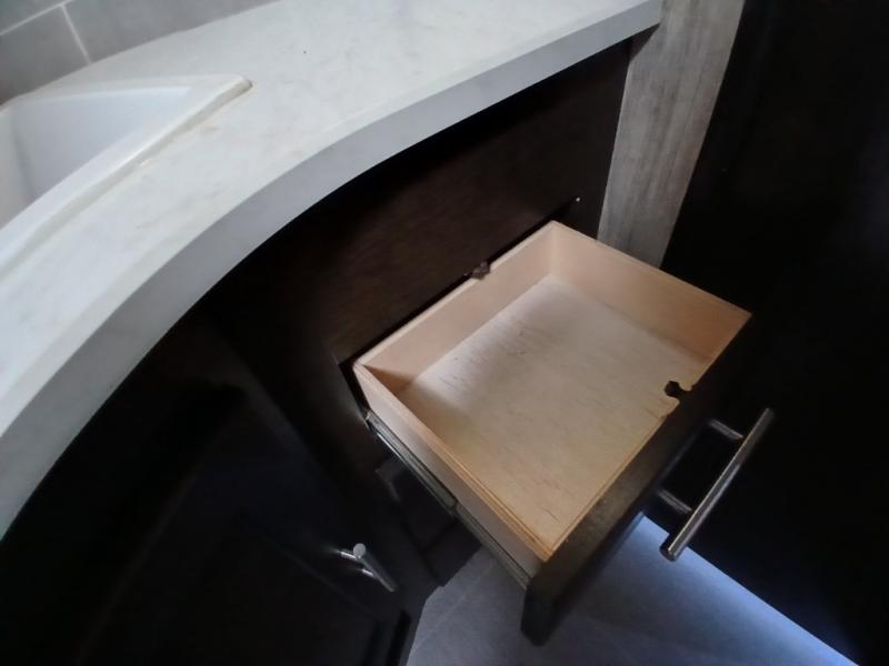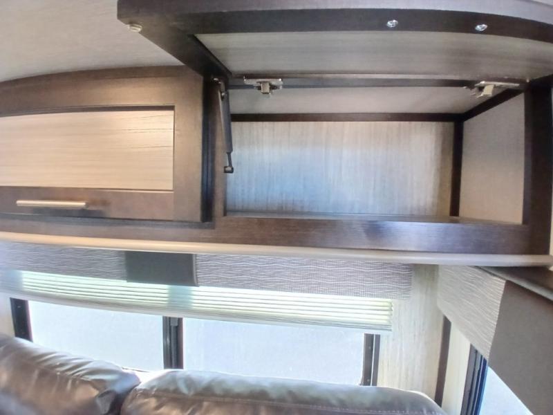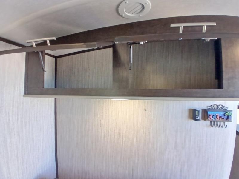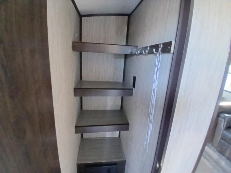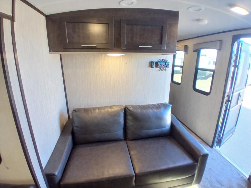 The chef in the family will love this kitchen layout along the rear wall and side wall giving them extra counter space to make their favorite meals and desserts for when guests visit. And the walk-in pantry will allow them to stock up on everything they might need. You will also find it easy to host your family and friends during the day and overnight with the booth dinette and two sofas that have been included in the main living area, and when it is time for bed, nothing will feel better than retreating to your very own queen bed for the night as you slide the space savings door closed.