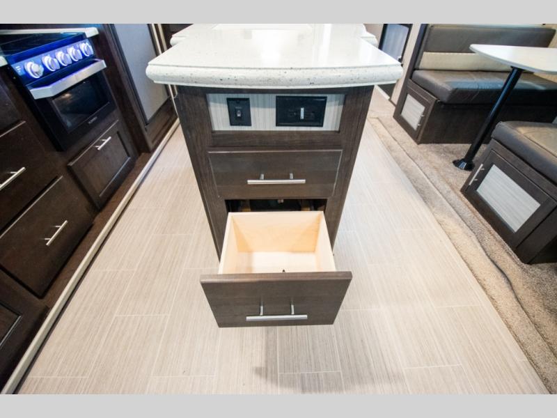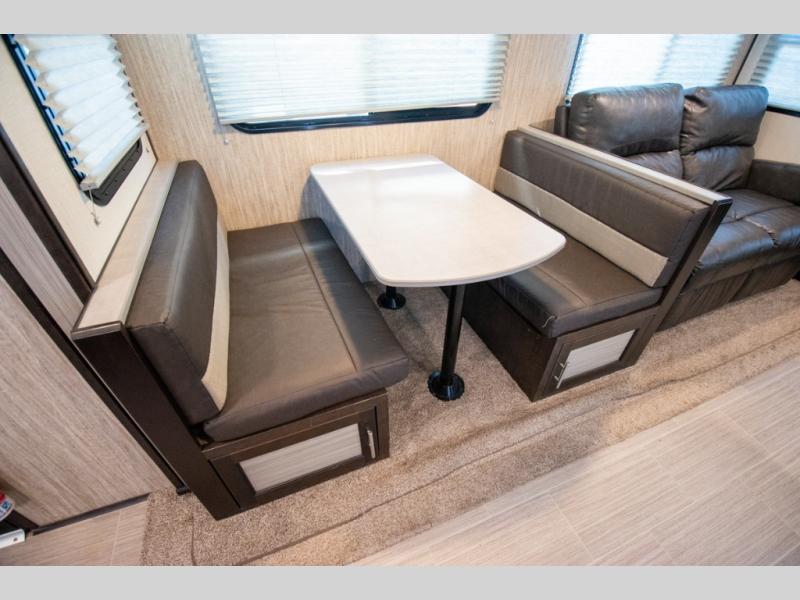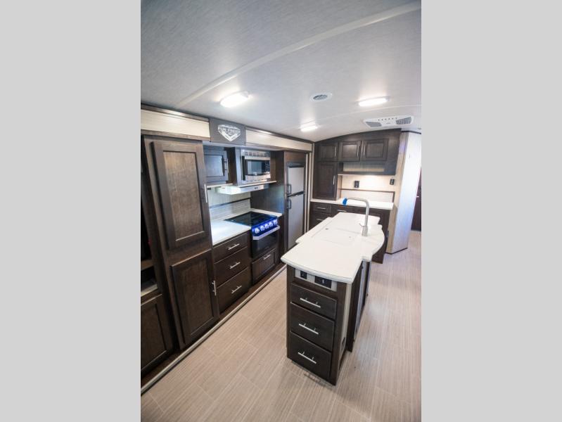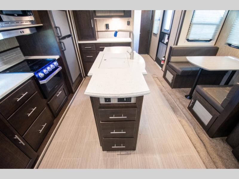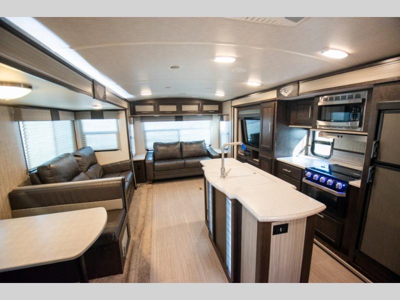 Don't waste time with boring vacations when you can have a blast in your own travel trailer where ever you want! With the kitchen island, double-door refrigerator, and three-burner range, you will have plenty of tools to create perfectly cooked meals each and every time you get away. If you aren't eating outside under the power awning you can eat inside at the booth dinette or while sitting on one of the two sofas. All of the furniture even doubles as sleeping space for family and friends. And don't forget about the convenience of having your own full bathroom. Start camping today!