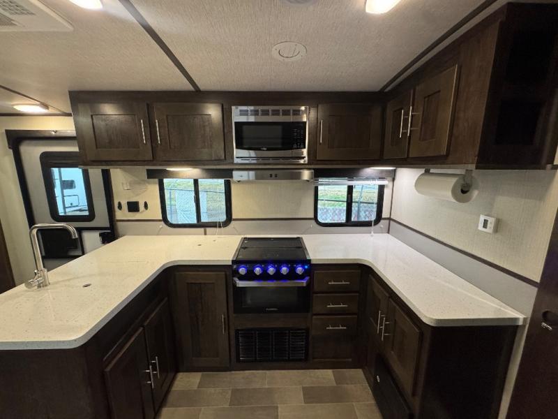 With any Cruiser Radiance Ultra Lite travel trailer you will enjoy a 6' 11" barreled ceiling, providing you with extra interior space, and LED lighting to make you feel at home. Each unit features multiple charging stations with 12v and USB ports, and comfortable residential-style free standing furniture with top-stitching. These models include many more features you will love, including solid surface countertops with matching sink covers, an LED awning light, plus so much more! Choose your favorite floorplan today and hit the road tomorrow!