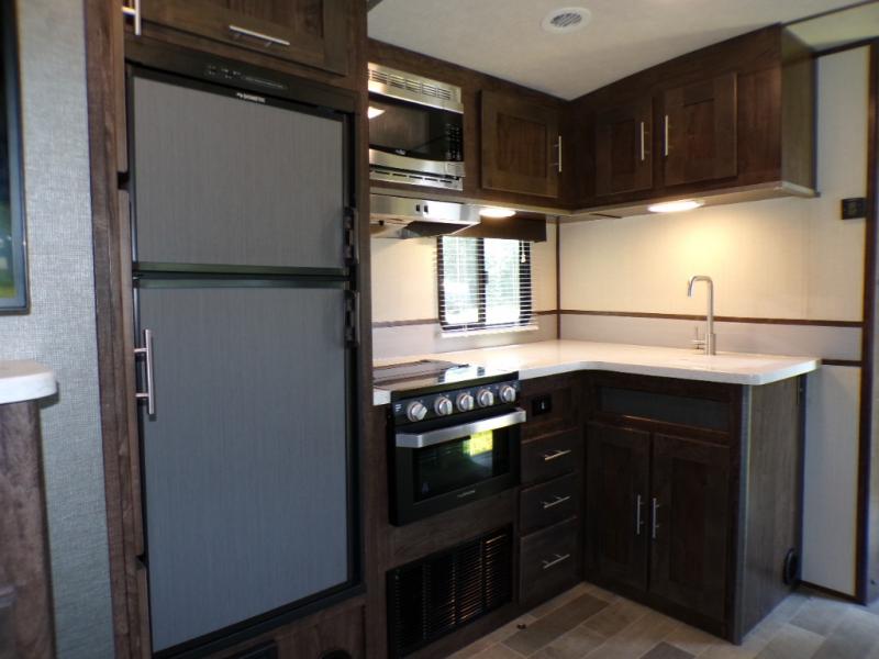 With any Cruiser Radiance Ultra Lite travel trailer you will enjoy a 6' 11" barreled ceiling, providing you with extra interior space, and LED lighting to make you feel at home. Each unit features multiple charging stations with 12v and USB ports, and comfortable residential-style free standing furniture with top-stitching. These models include many more features you will love, including solid surface countertops with matching sink covers, an LED awning light, plus so much more! Choose your favorite floorplan today and hit the road tomorrow!