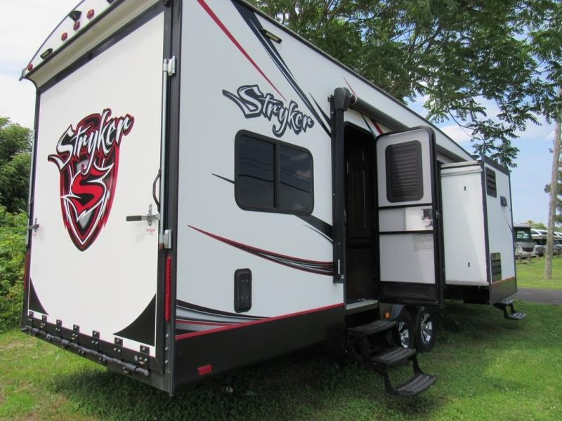 The Stryker line is all about family fun! The foundation is powder coated steel frame with lamination that lasts because it uses high-density block foam insulation. You are going to be able to stay for an extended season because of the Flex foil insulation in the floor and the separate heat duct that allows you to camp in cooler weather. All of these heavy duty components that Stryker toy haulers have provides lower maintenance, longevity, and more reliability. Choose your unit today!