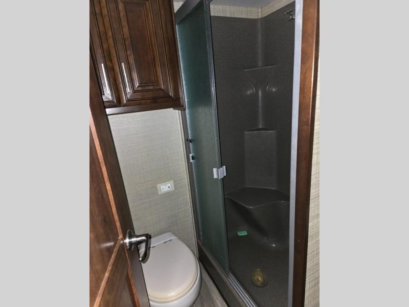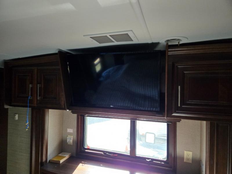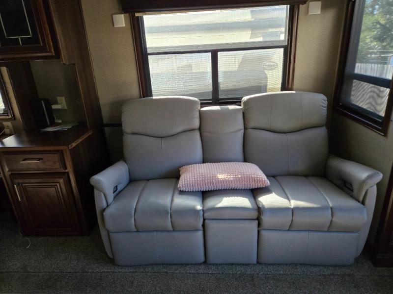 If you are looking to upgrade your camping lifestyle, then you need this Mobile Suites luxury fifth wheel. From its private bedroom with a king-size bed and walk-in closet to its fully loaded kitchen with a three-burner range top and center island, this unit will knock your socks off with all of the high-class amenities it contains. Whenever you find yourself in disagreement over what to watch on the 55" LED Smart HDTV in the living room, you can retreat back to the bedroom where you can watch your own shows on the 32" LED TV that rests on one of the four slides in this unit.