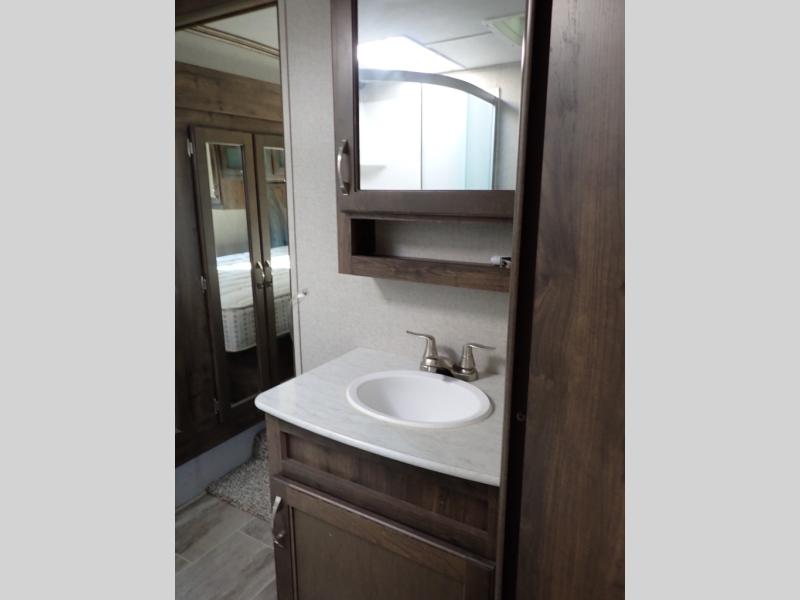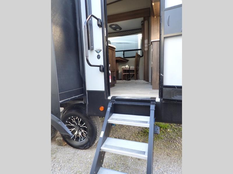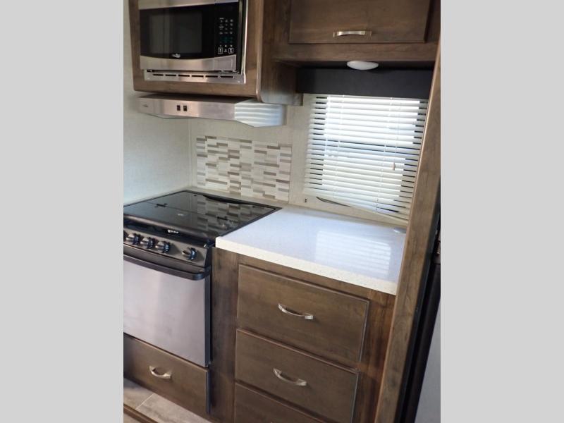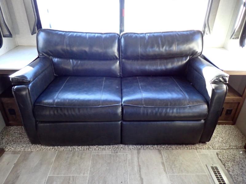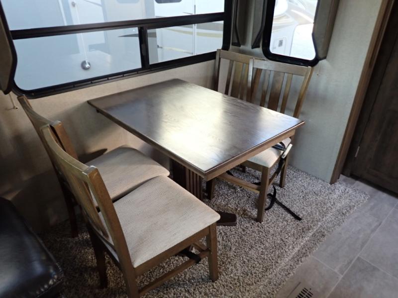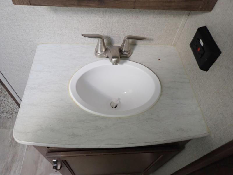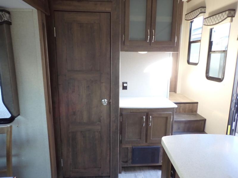 How does dual slide outs in the main living and kitchen area, and a single slide out in the bedroom sound in your next fifth wheel. This spacious RV also includes a kitchen island to prepare and serve meals, as well as wash dishes all while visiting with the whole gang. There are several furniture seating choices such as the popular theater seats for two, or optional free standing dinette with chairs. And the dual entry bathroom provides a convenience you didn't even know you needed but you will love it! Step inside to find even more comfortable and luxurious features you will want when traveling.