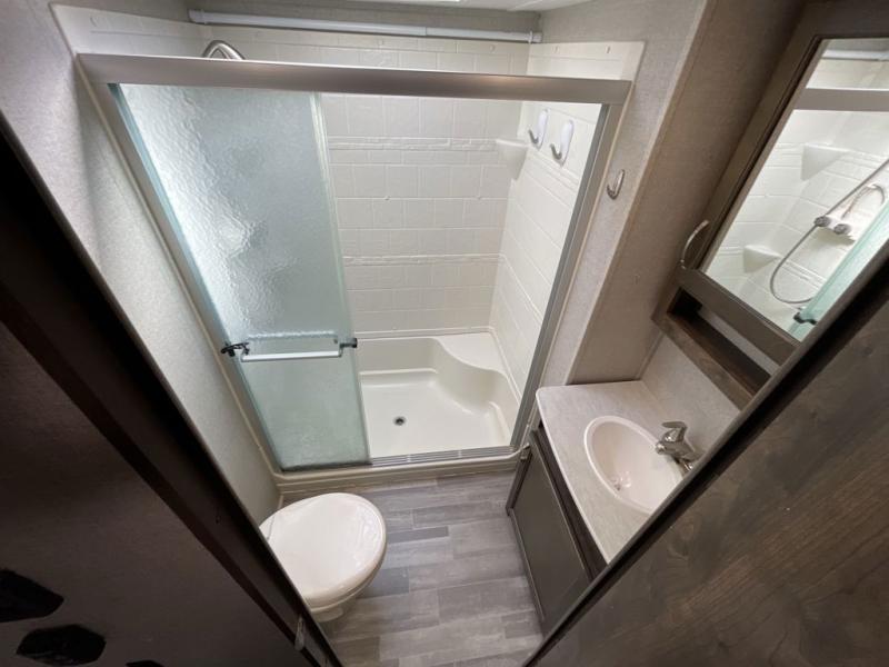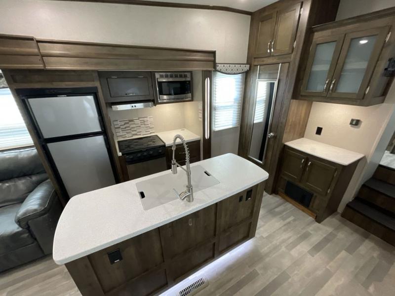 With any Dutchmen Astoria fifth wheel by Aerolite you can enjoy luxury inside with a glass fireplace in the living area, the tallest bedroom height in the mid-pro fifth wheel segment, and the stainless steel appliances in the kitchen. Outside you will find easy set up with the One-touch automatic leveling system, and a safe entry with the durable aluminum premium steps that can collapse and expand quickly. The iN-Command remote operating system and Filon siding are a few more standard features you can appreciate in your next favorite Astoria fifth wheel.
